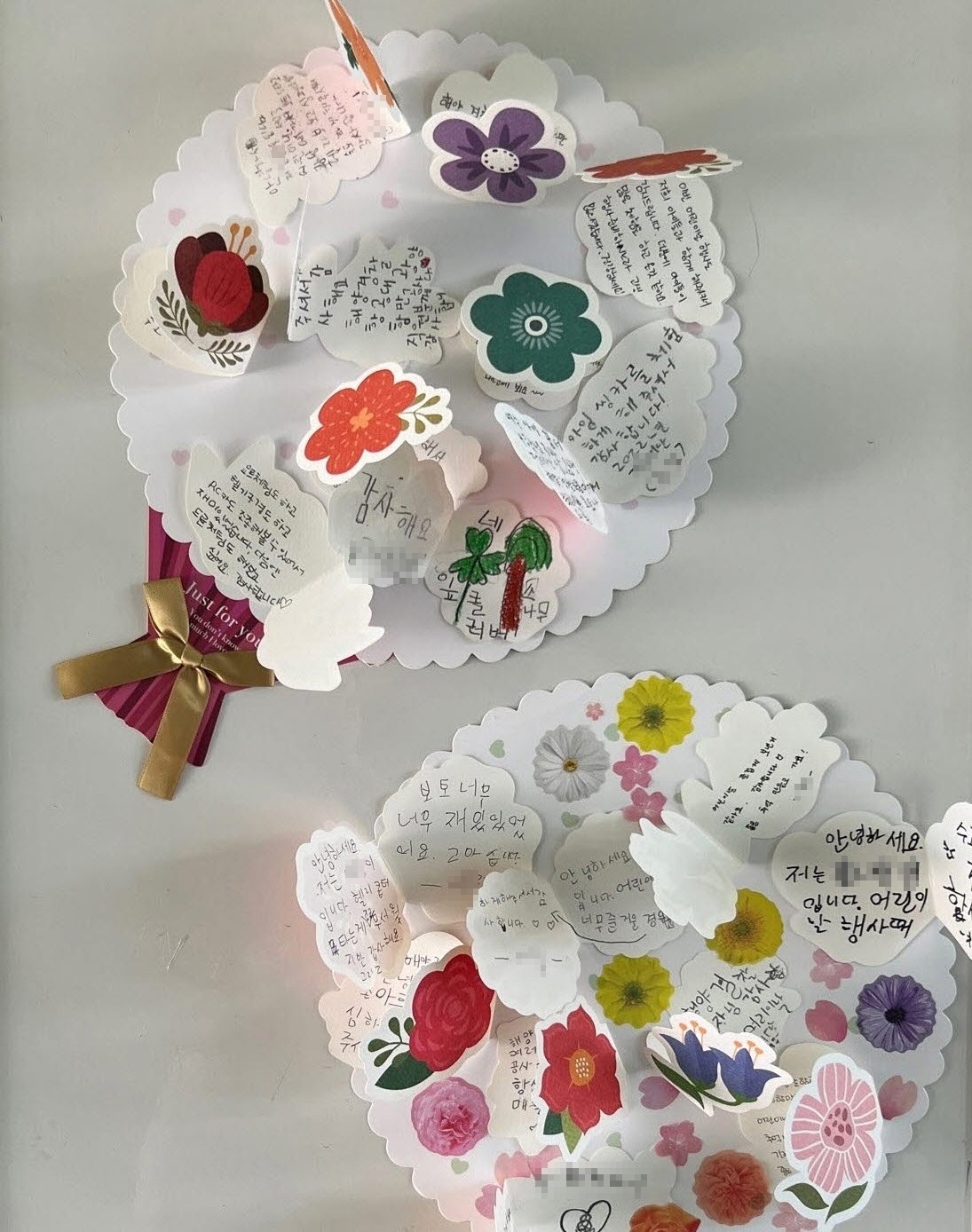 예쁜 꽃으로 장식된 20통이 넘는 편지에는 아이들이 직접 손으로 쓴 글자가 빼곡했다.