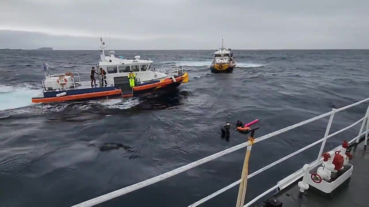 수색을 실시하던 경비함정에서 오후 1시 55분쯤 최초 입수지점보다 약 4.8km 떨어진 중문해수욕장 인근 해상에서 표류하고 있는 다이버 2명을 발견했다.