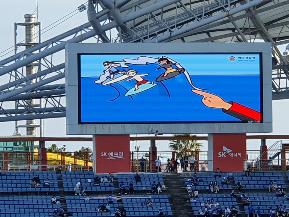 현재 진행되고 있는 K리그 시즌 제주유나이티드FC의 홈경기에서 ▴입장객 대상 해양경찰 캐릭터인 해누리, 아치를 활용한 수상레저 안전 홍보물(방수팩, 물티슈) 배부, ▴하프타임 중 전광판에 서핑 안전 유의사항 애니메이션 상영, ▴구단 SNS채널에 수상레저 안전 홍보물 게시, ▴골 세레머니 시 구명조끼 착용 관련 퍼포먼스 등을 진행할 예정이다.