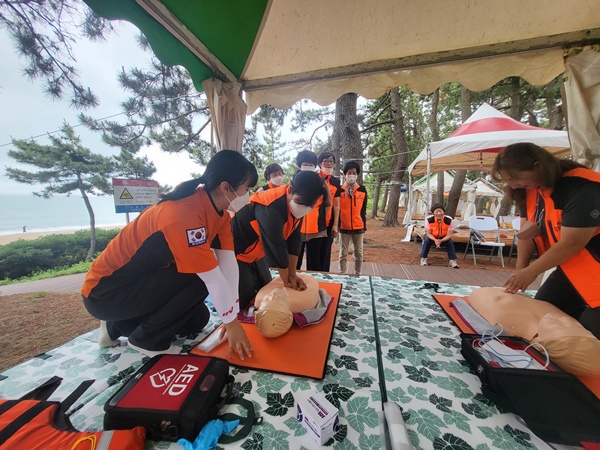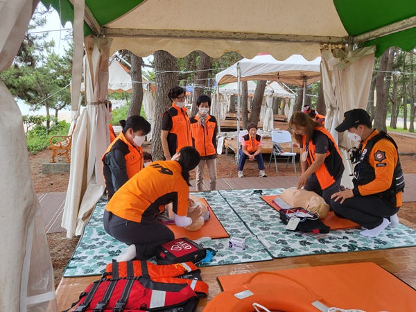 내용은 ▲ 훈련 브리핑 및 안전사고 예방교육 ▲ 수난구조기법 숙달 ▲ 익수자 구조기법 숙달 ▲ 익수자 응급처치 및 CPR 교육 ▲강평 및 장비회수 순서로 진행됐다.