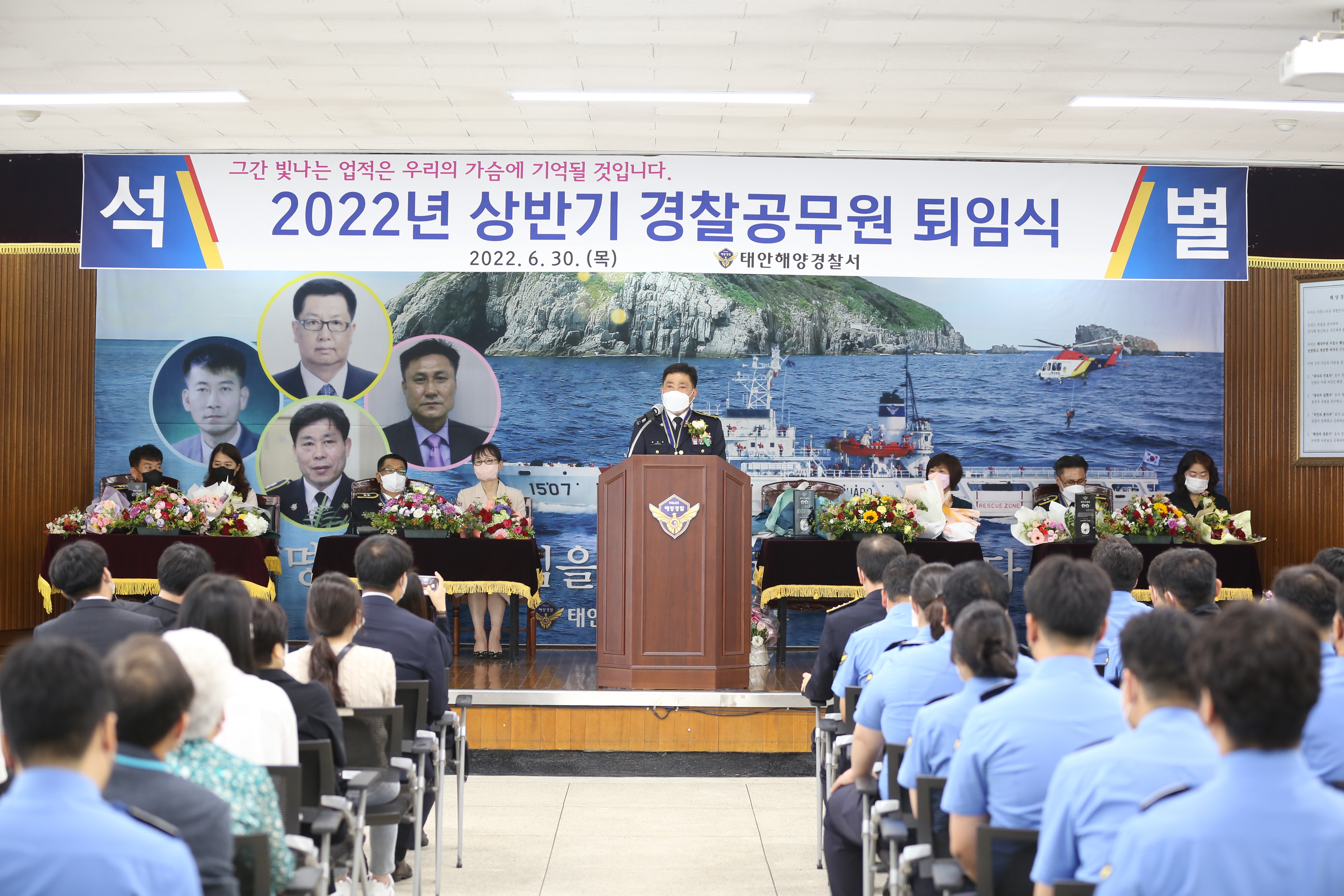영예로운 정년퇴임을 맞이해 재직기간 해양경찰 발전에 헌신하고 국가에 기여한 공적을 인정받은 퇴임자들에게 공로장을 수여하고, 동료 경찰관들과 석별의 정을 나눴다.