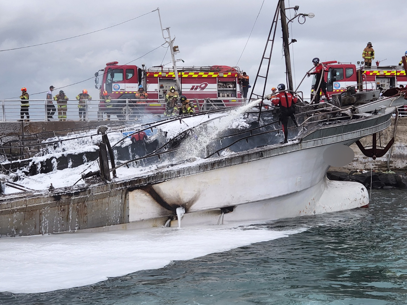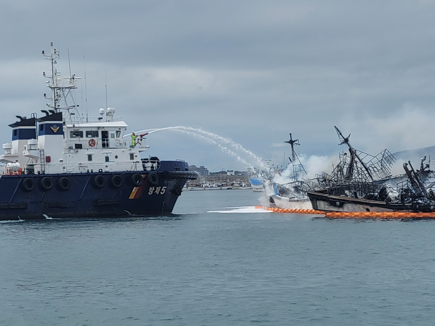 서귀포해양경찰서(서장 김진영)는 오늘(4일) 오전 4시 29분쯤 서귀포시 성산읍 성산항 내에서 정박 중인 연승어선 3척(29톤, 39톤, 47톤/성산 선적)에 화재사고가 발생했다는 신고를 접수받고 화재진압 및 피해를 파악 중이라고 밝혔다.