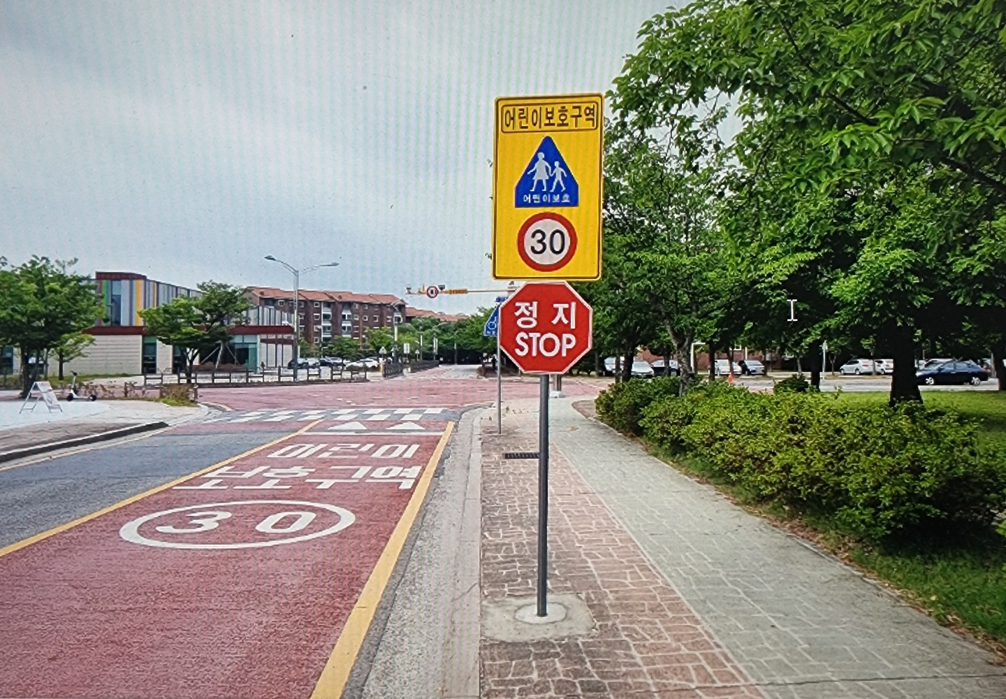 어린이 보호구역 내 신호등 없는 횡단보도에서는 보행자 유무와 관계없이 일단 일시정지 후 서행으로 통과해야 한다.