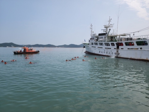 완도해양경찰서(서장 김정수)는 지난 15일, 완도수산고등학교 해상훈련(사고대처요령·퇴선훈련)간 안전관리를 지...