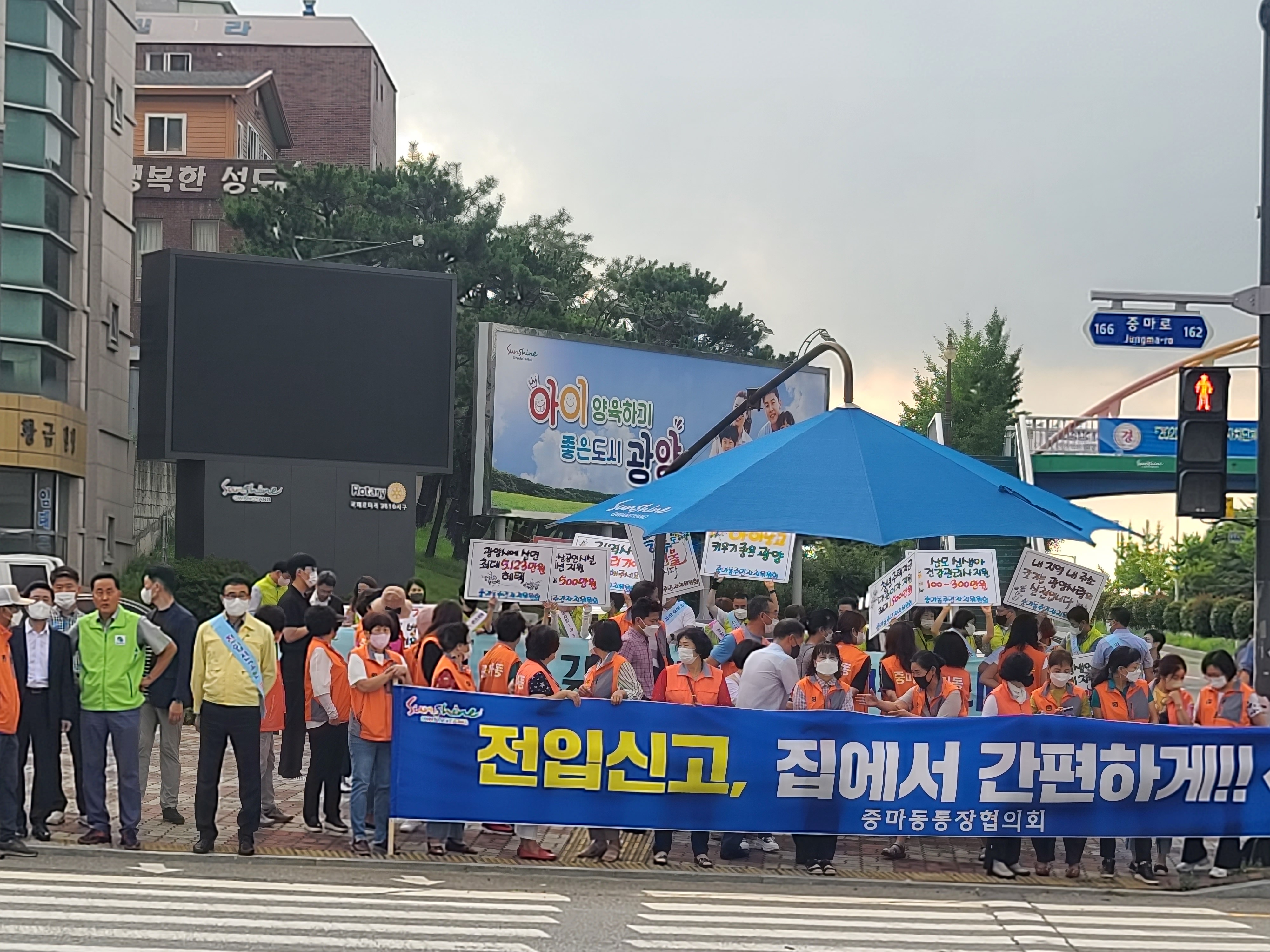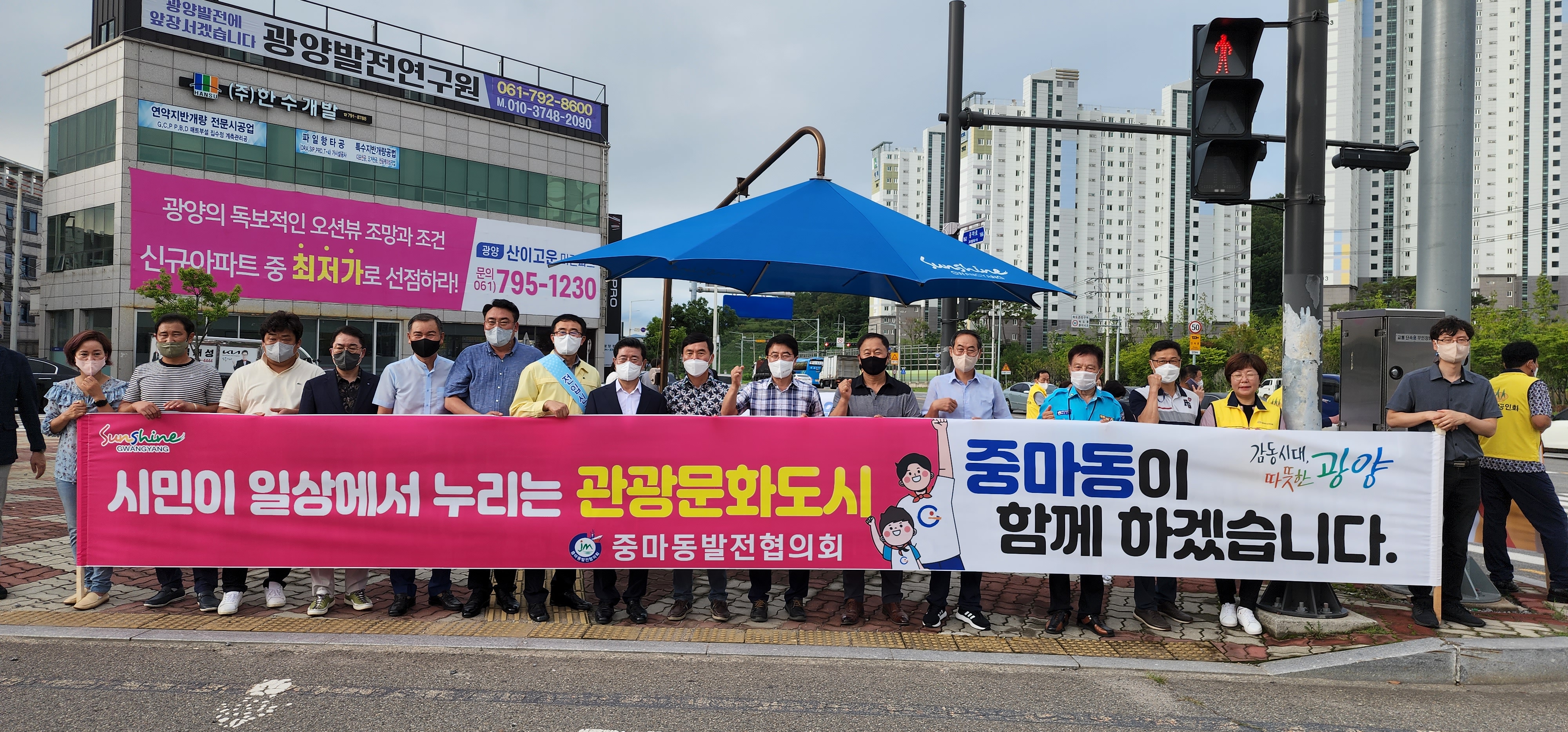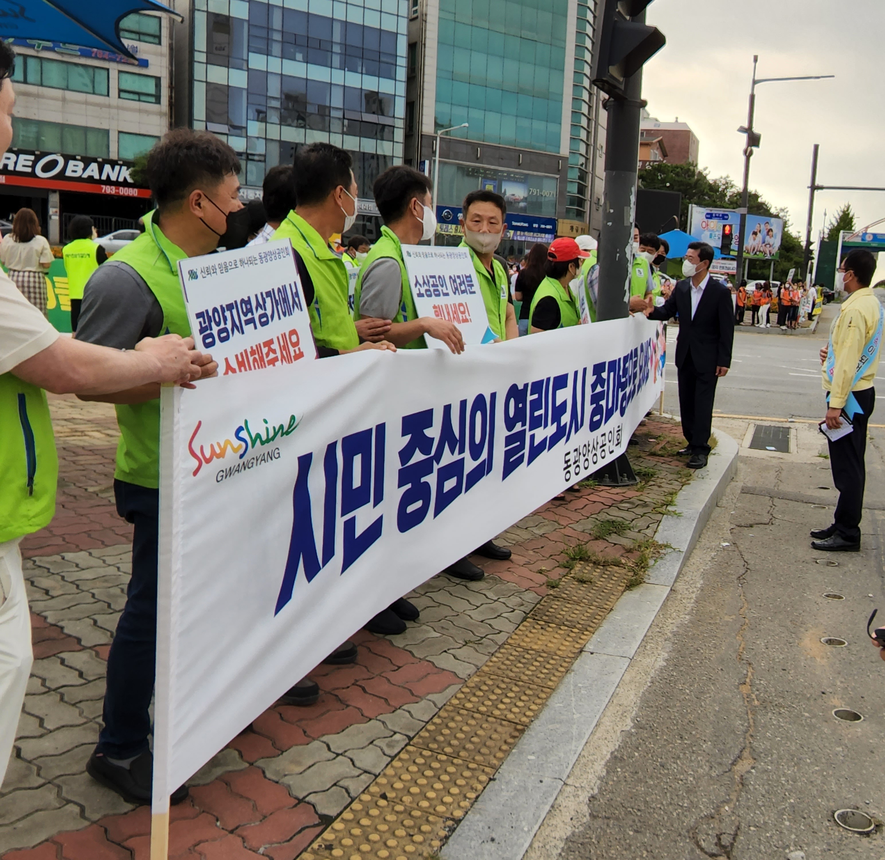 광양에 직장을 두고 거주하는 시민들의 전입을 유도하기 위해 민선 8기 출범에 따라 새로운 비전 체제와 시정방침 홍보 코로나19 극복과 지역경제 회복을 위한 시민들의 지역 내 소비 촉진 유도를 목표로 참가는 정인화 광양시장 및 공무원 과 중마지역 사회보장협의체 등 총 7개 기관과 15개 사회단체 소속의 관계자들이 다양한 플래카드를 준비해서 참가하였으며 단체명은 다르나 모두가 한마음 한뜻으로 살고 싶은 광양, 살기 좋은 광양을 만들어 가자는 공통 된 목표를 가지고 참가하여 요즘 날씨보다 더욱더 뜨거운 현장의 열기를 느낄 수가 있었다.