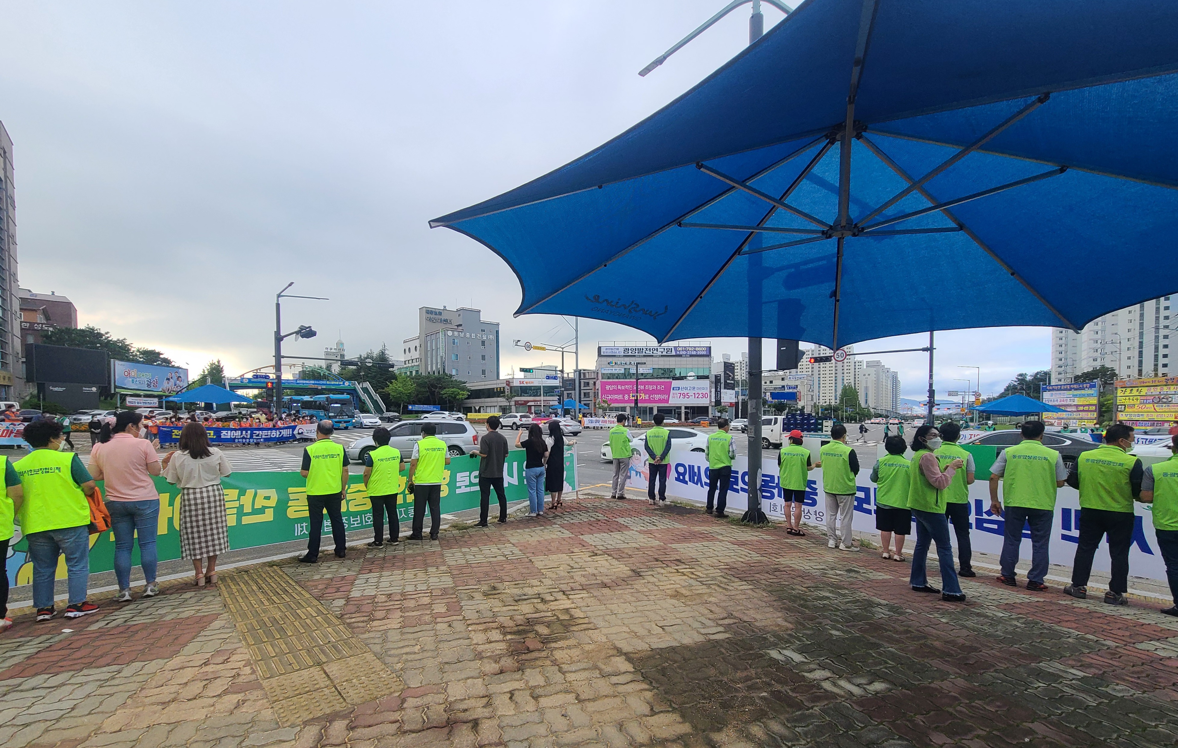 금일(7월 25일) 월요일 07:30~08:30 중마동 컨부두 사거리에서 실 주소 갖기 캠페인을 하였다.
