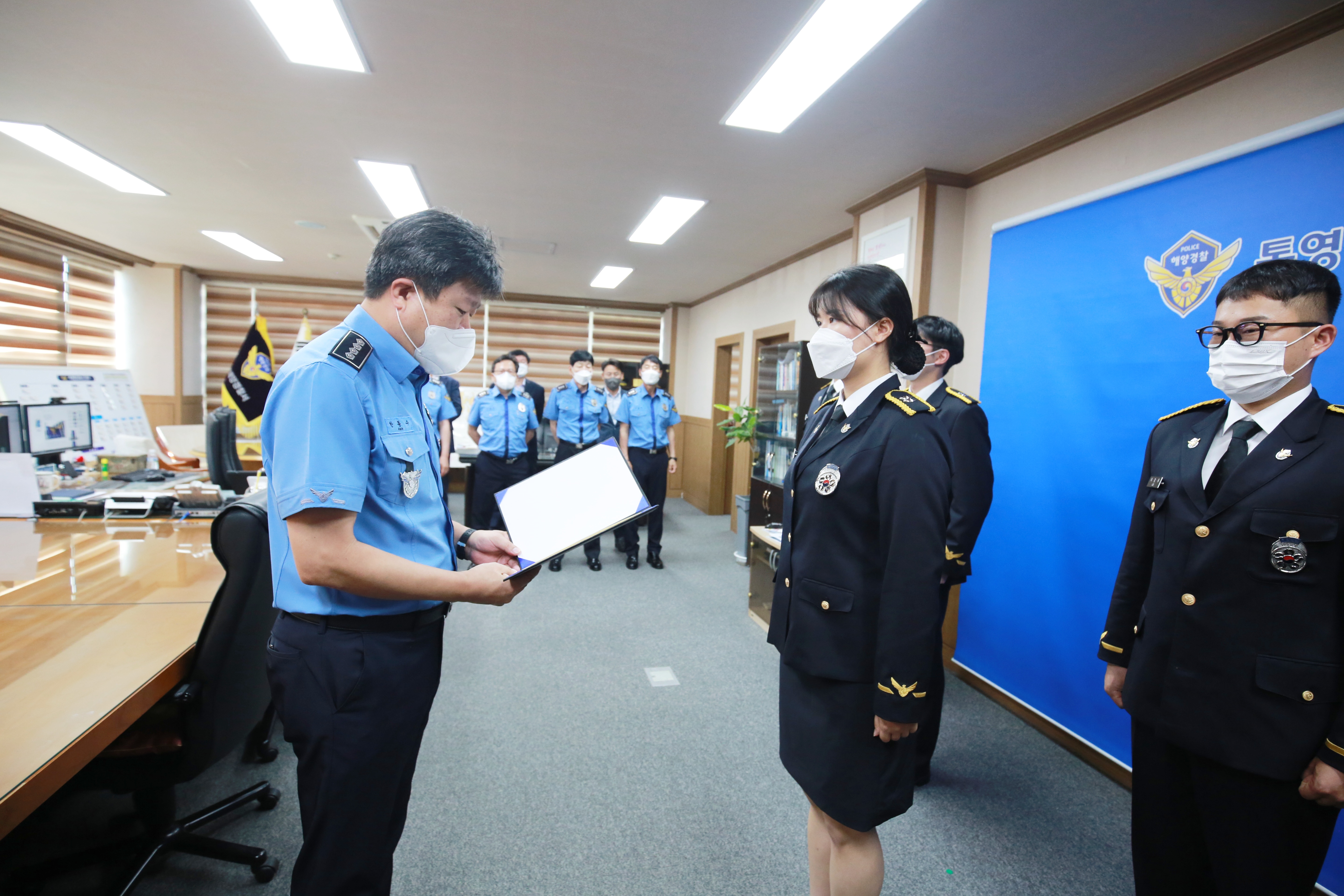 통영해양경찰서장은 “해양경찰로서 자부심을 가지고 현장업무에 임하고, 끊임없는 노력으로 업무역량을 강화하여 국민의 생명과 재산을 보호하는데 최선을 다 해달라.”고 당부했다.