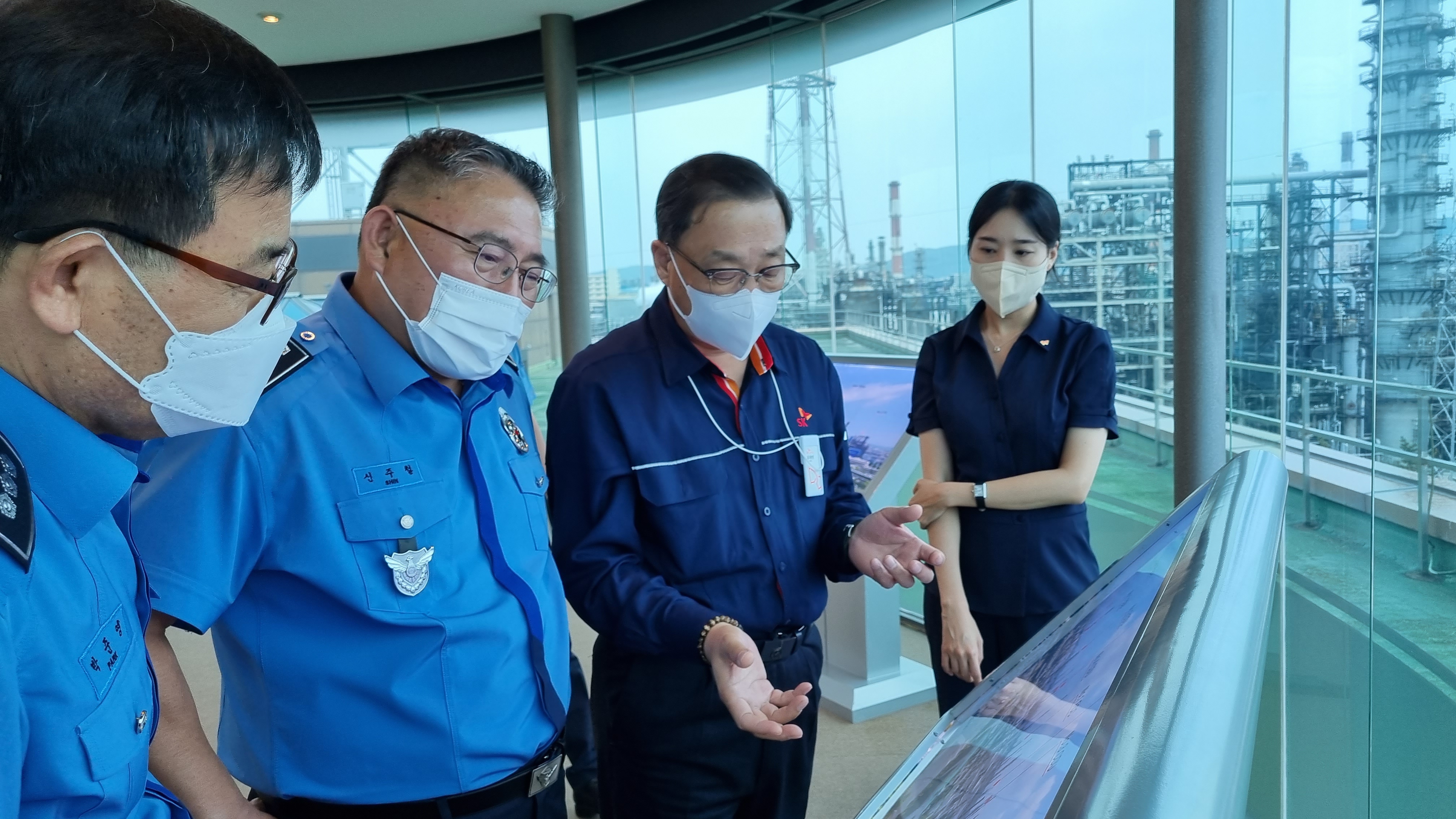 울산해양경찰서(서장 신주철)는 11일 오후 SK에너지(주) 울산COMPLEX (총괄부사장 유재영)를 방문하여 업무현황을 청취하고 해양 원유시설을 점검하였다고 밝혔다.