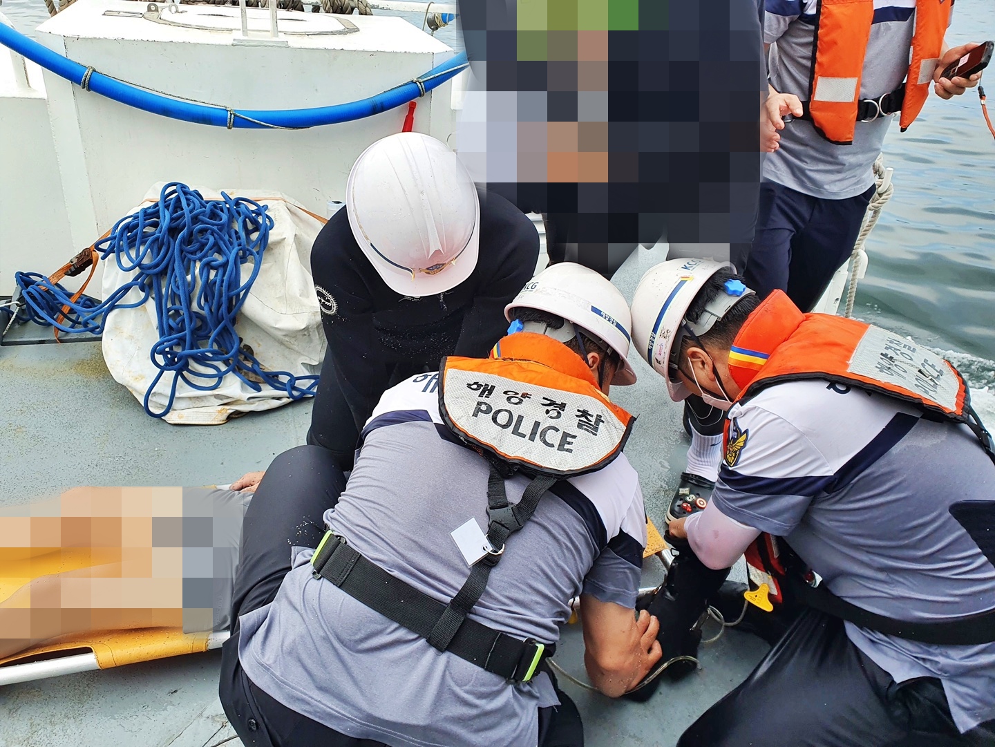 통영해경은 현장에 도착하였으나 저수심으로 구조정의 접근이 어려워 해경 구조요원 4명이 구조장비를 가지고 수영으로 환자에게 접근한 후 연안구조정으로 옮겨 태워 지속적으로 응급조치를 실시하면서 달아항에 대기 중인 119구급대를 통해 인근 병원으로 이송하였다.