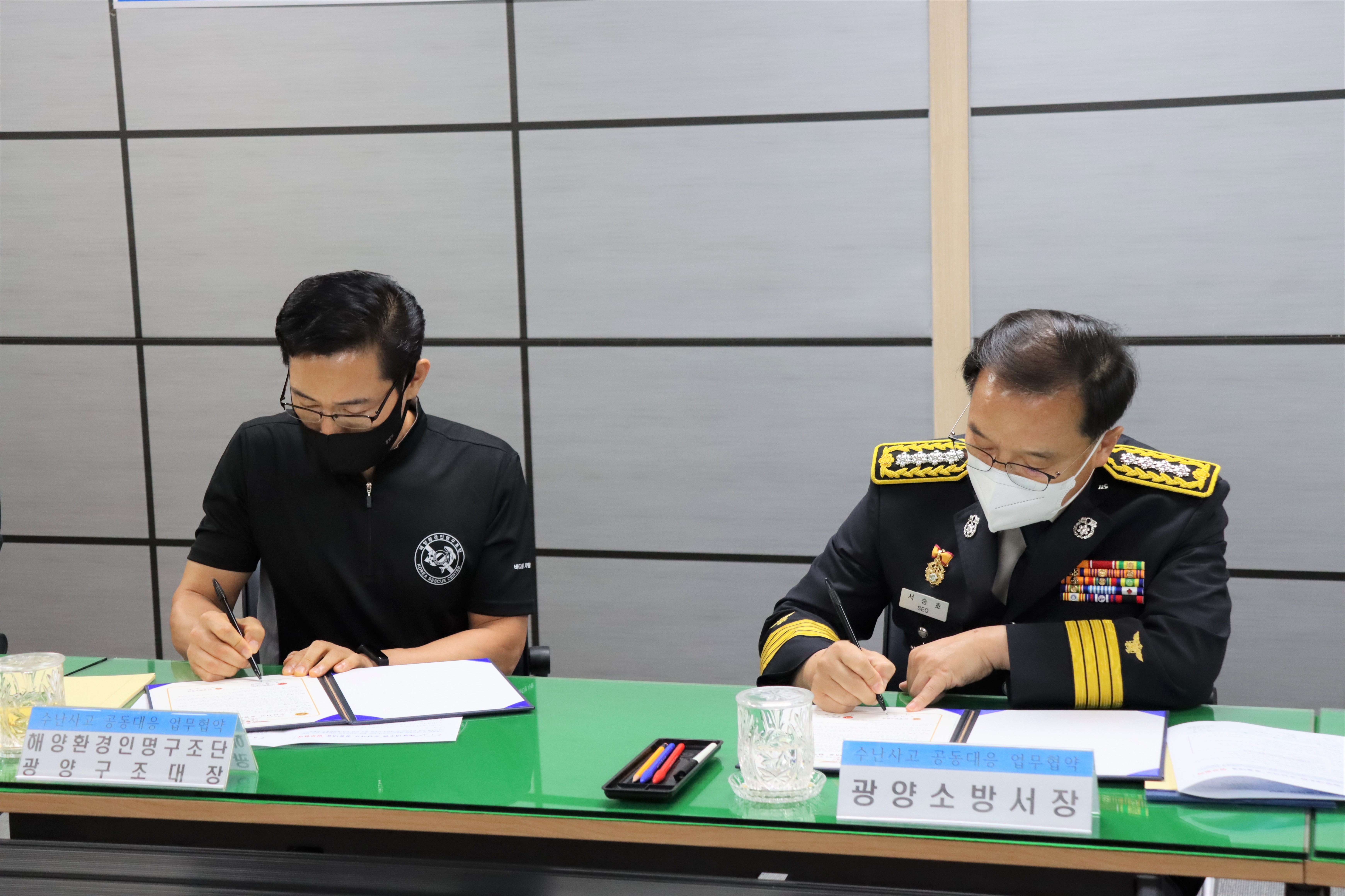 이날 업무협약식은 두 기관단체의 협력관계를 유지하여 시너지를 창출함으로써 "안전하고 살기 좋은 도시 광양"으로 만들어가기 위해 광양시 해양․내수면 수난사고에 대한 다이빙, 드론 전문인력 요청․지원 협력 및 수난구조활동, 해양환경 보존 등 공동대응체계를 마련하였다.