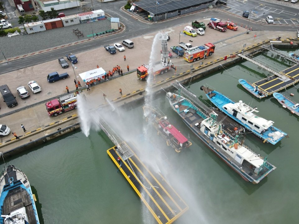 완도해양경찰서(서장 김정수)는 17일, 회진항과 마량항에서 항포구 정박어선 화재 발생을 가정한 민‧관 합동 화재진압 훈련을 실시했다고 밝혔다.