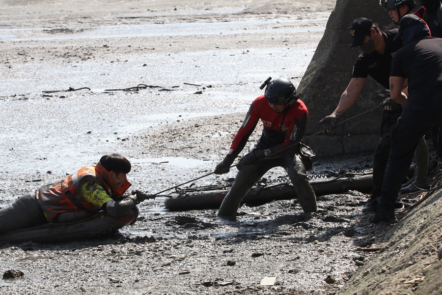 군산해양경찰서(서장 이철우)는 오늘 오전 9시 20분께 전북 군산시 금암동 내항 인근 해상에서 해망파출소, 해경구조대, 전북해양경찰경우회 등 40여명이 참여한 가운데 갯벌 고립자 구조 훈련을 실시했다고 26일 밝혔다.