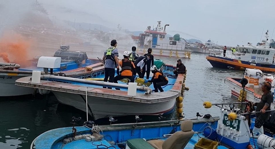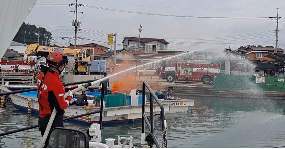 완도해양경찰서(서장 김정수)는 8월 30일, 해남 송지면 어란진항에서 항포구 정박어선 화재 발생을 가정한 민ㆍ관 합동 화재진압 훈련을 실시했다고 밝혔다.