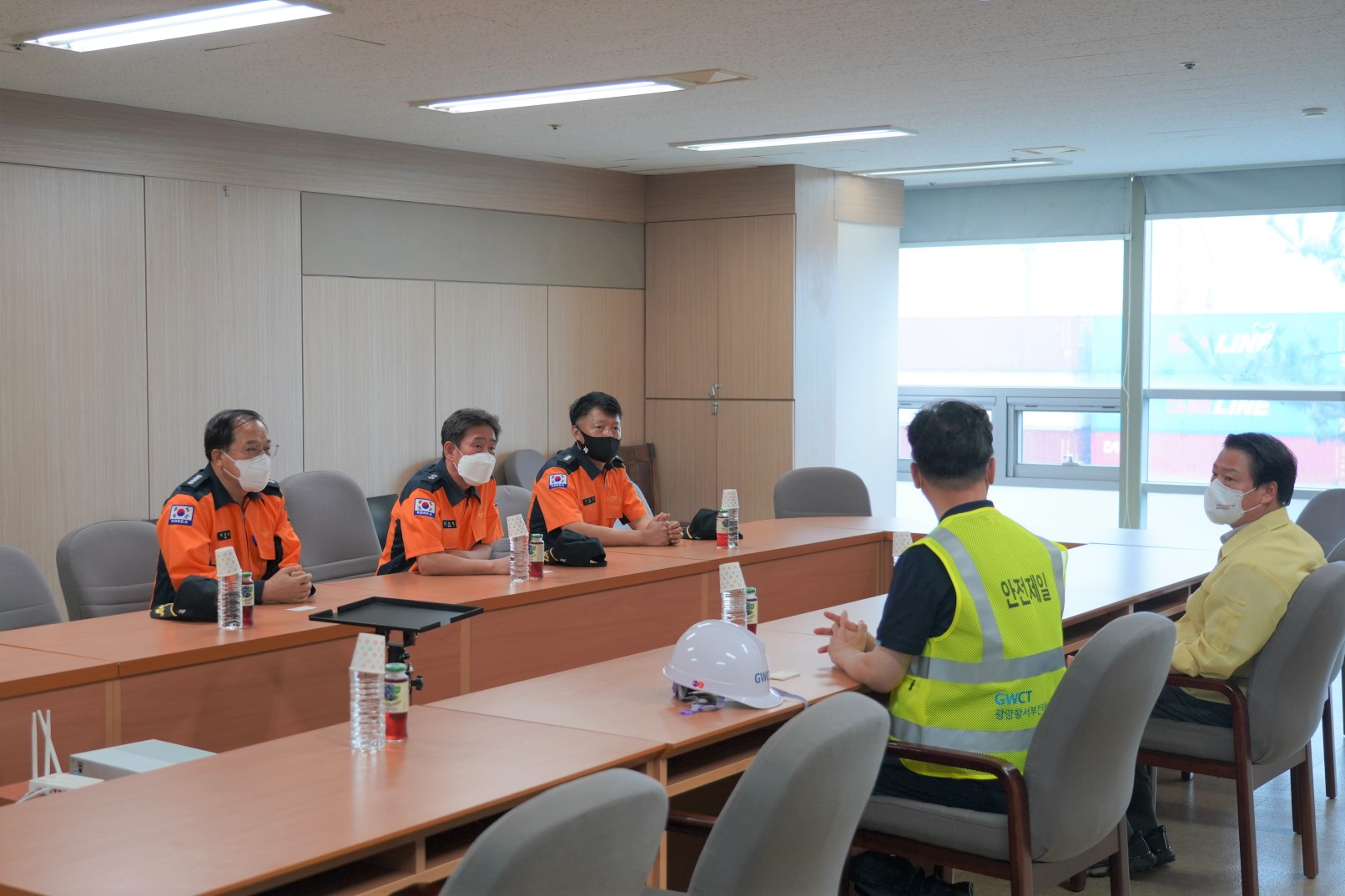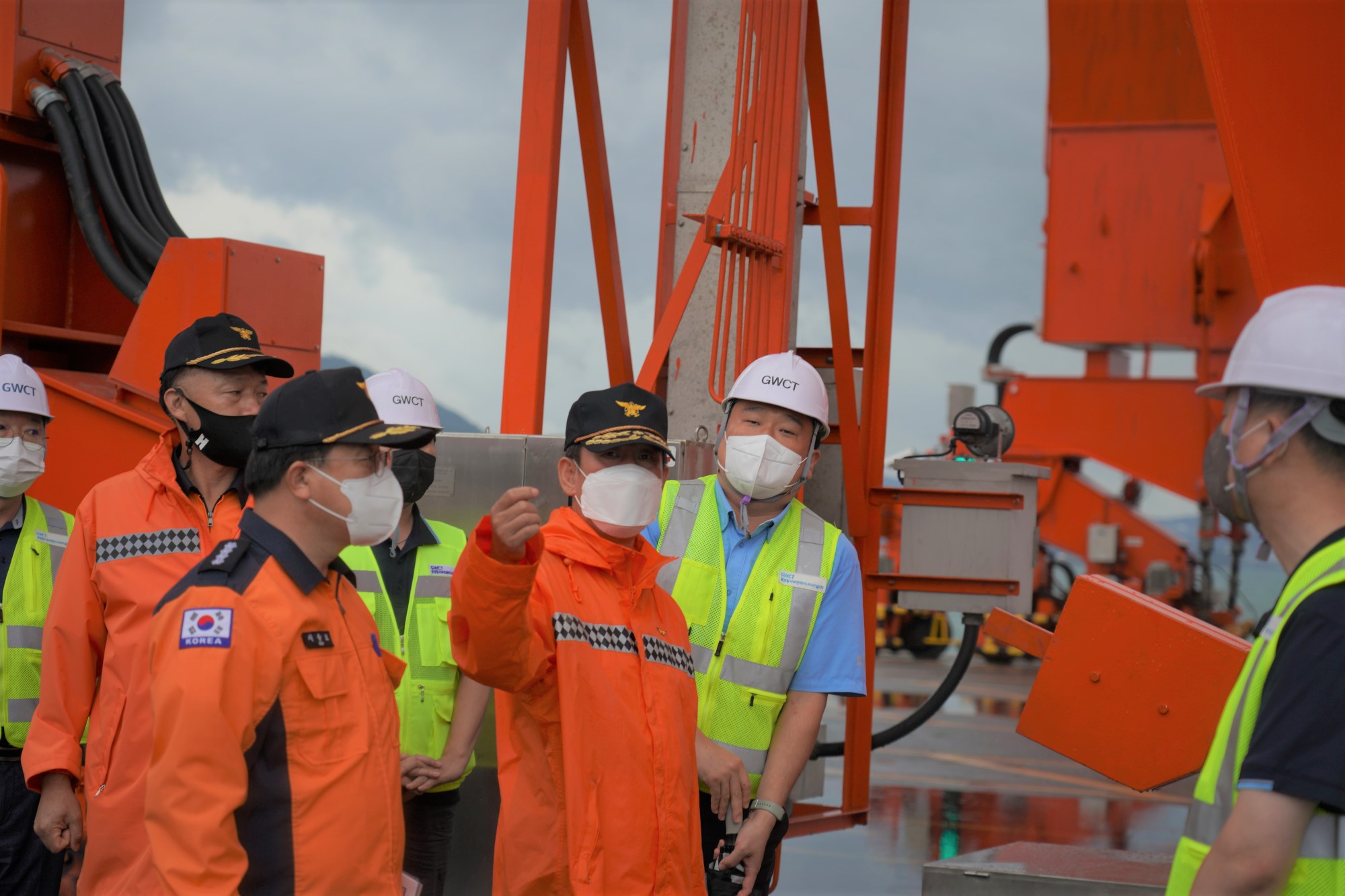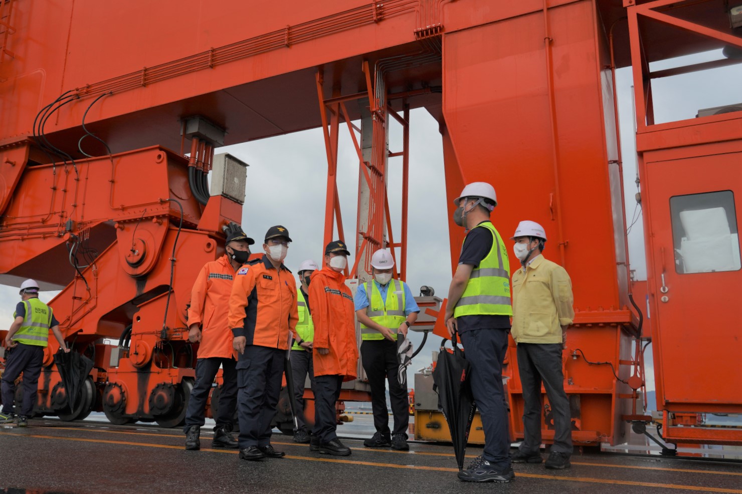 이날 광양항 서부 컨테이너터미널에 방문하여 하역 장비(컨테이너크레인) 등을 점검하는 등 피해 우려지역 예찰활동에 나섰다.