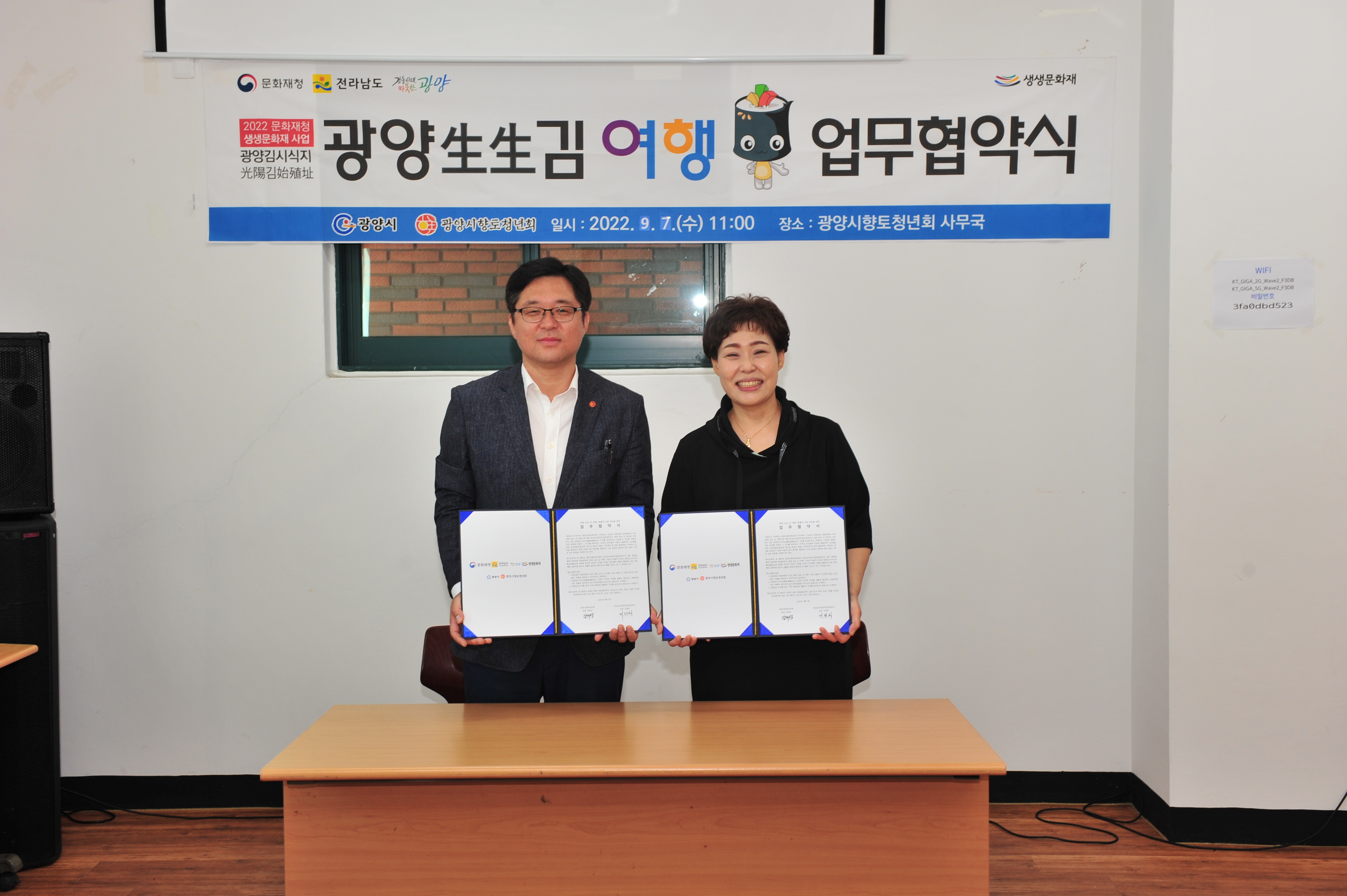 광양시향토청년회(회장 김대성)은 지난 7일 오전 광양시향토청년회 사무국에서 호남요리제과직업전문학교(교장 서광희)와 2022년도 문화재청 생생문화재 『광양 生生 김 여행』 사업을 위한 업무협약을 체결했다.