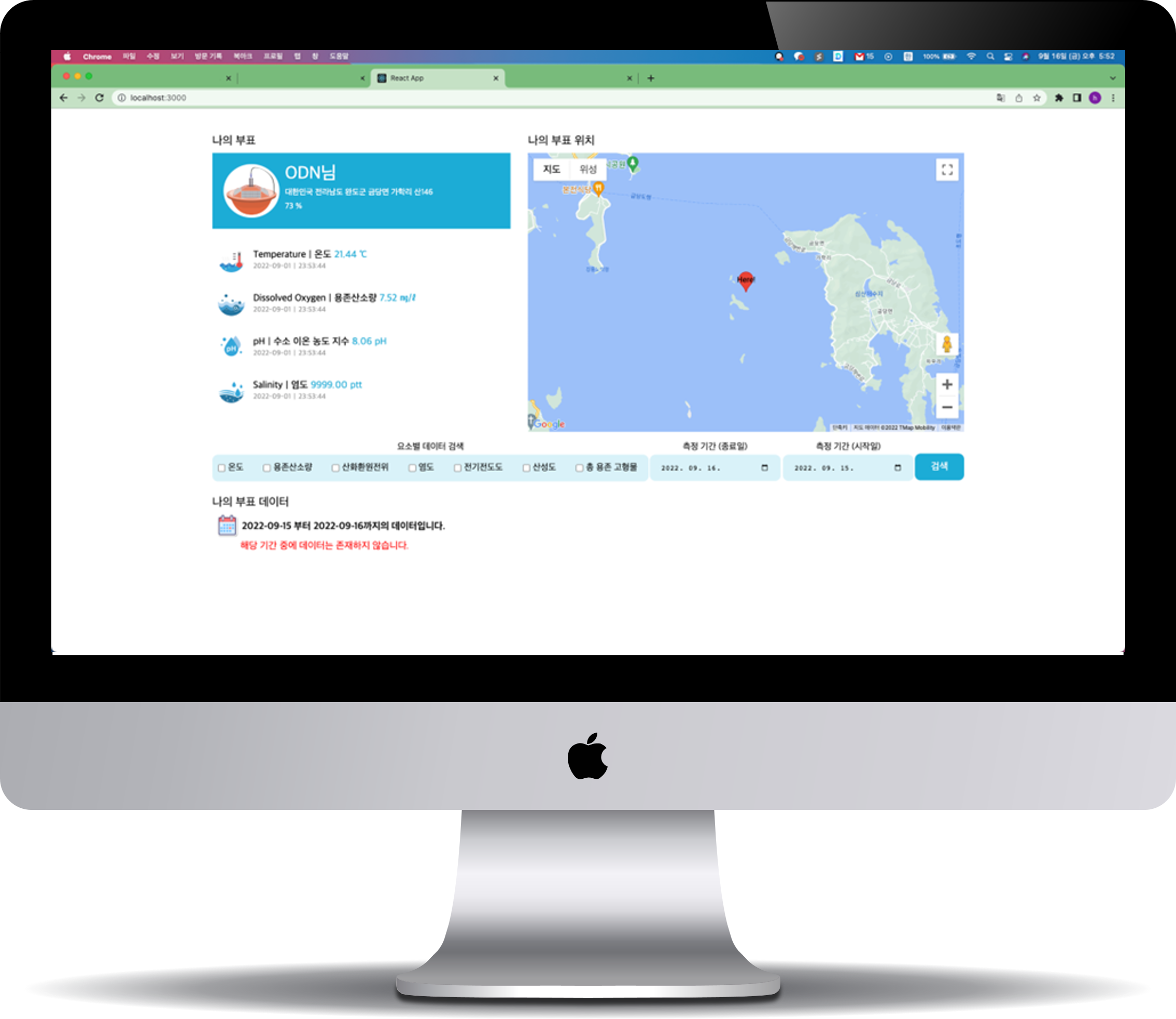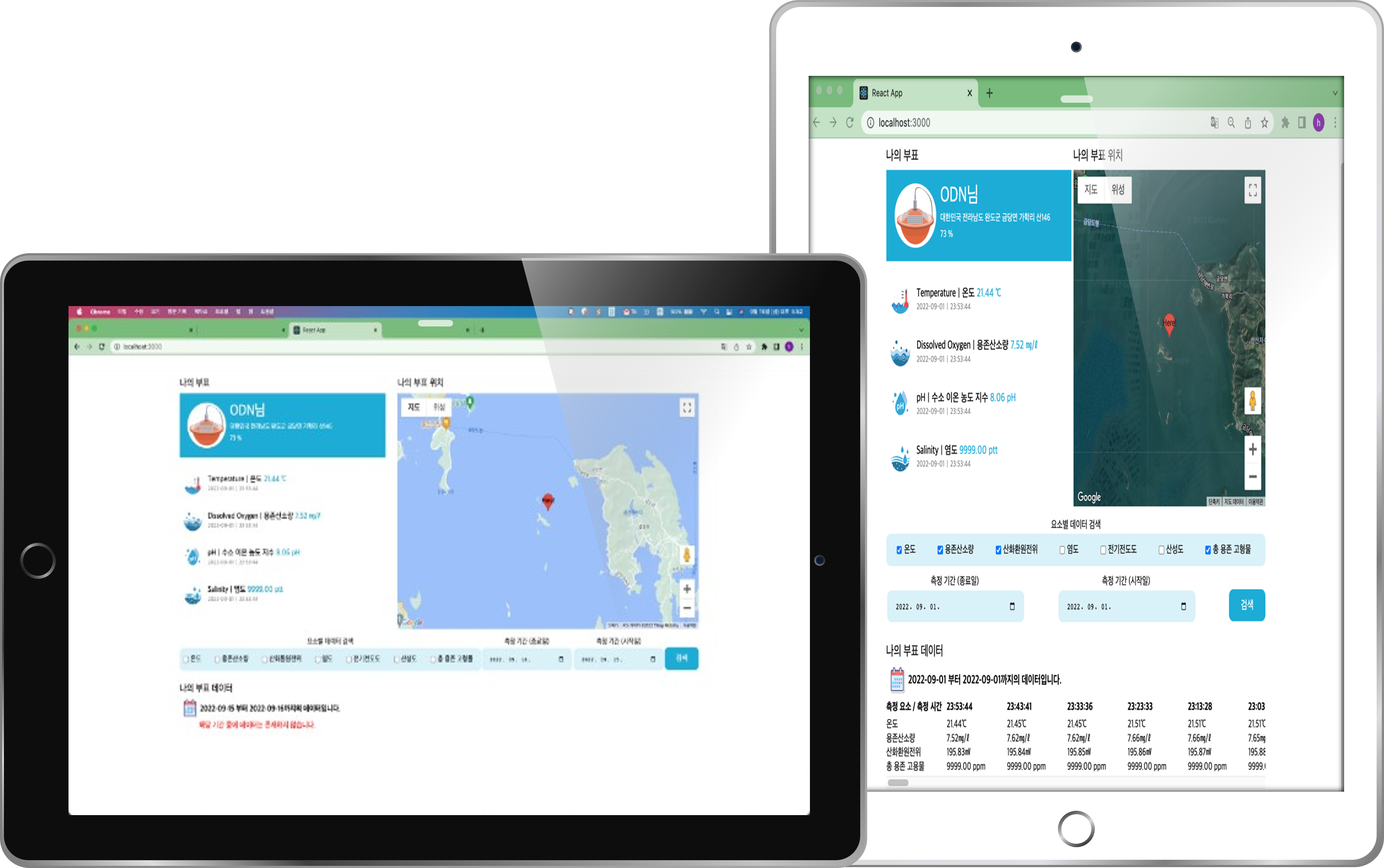 기존 해양 정보를 제공하는 해양수산부의 Open api나 제품화된 해황 정보 솔루션의 경우 수온과 염도 정도의 단순 정보량을 제공했던 것과 다른 방향성으로 주식회사 오든에서는 양식 어가의 최적 양식 환경 조건을 연구하거나 조건을 만들어 생산량이나 품질의 등급을 높일 수 있도록 수온, 용존산소, 산성도, 염분, 엽록소 등 다양한 측정 지표를 기반한 데이터 서비스를 제공한다.