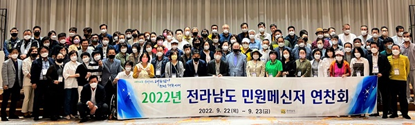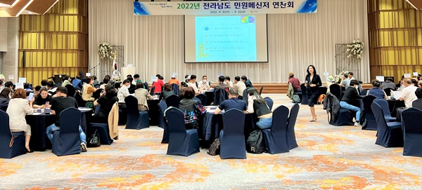 전라남도는 민원메신저 120여 명이 참석한 가운데 메신저 간 소통과 팀워크 강화를 통한 역량 강화를 위한 워크숍을 지난 23일까지 2일간 고흥 썬벨리리조트에서 개최했다.