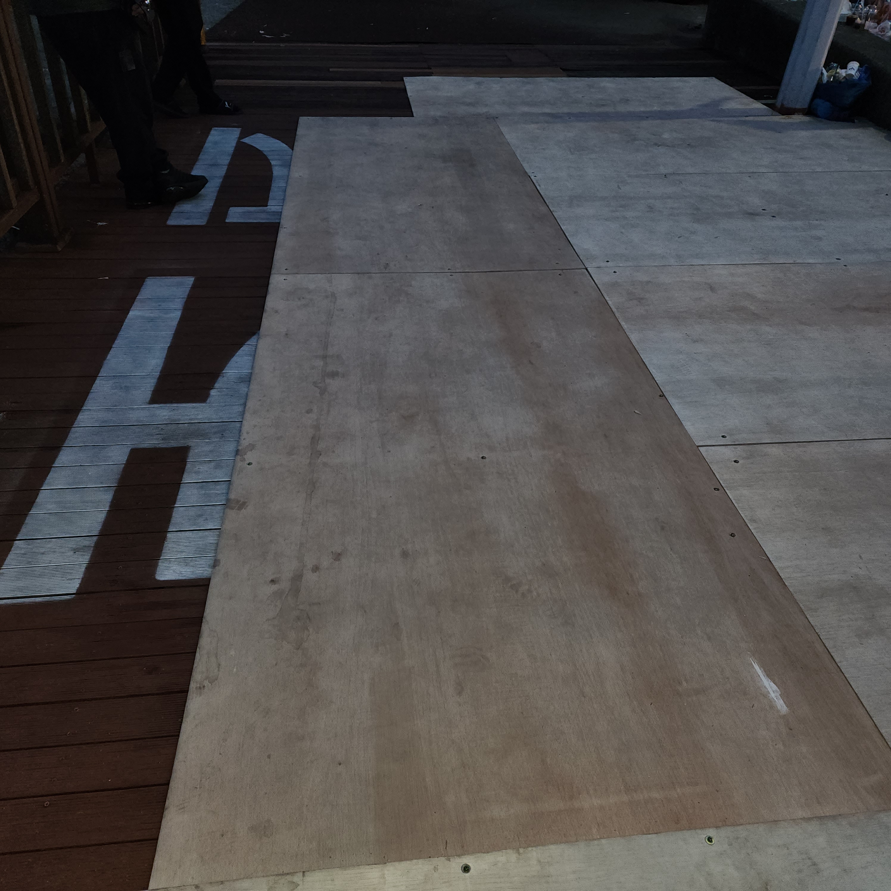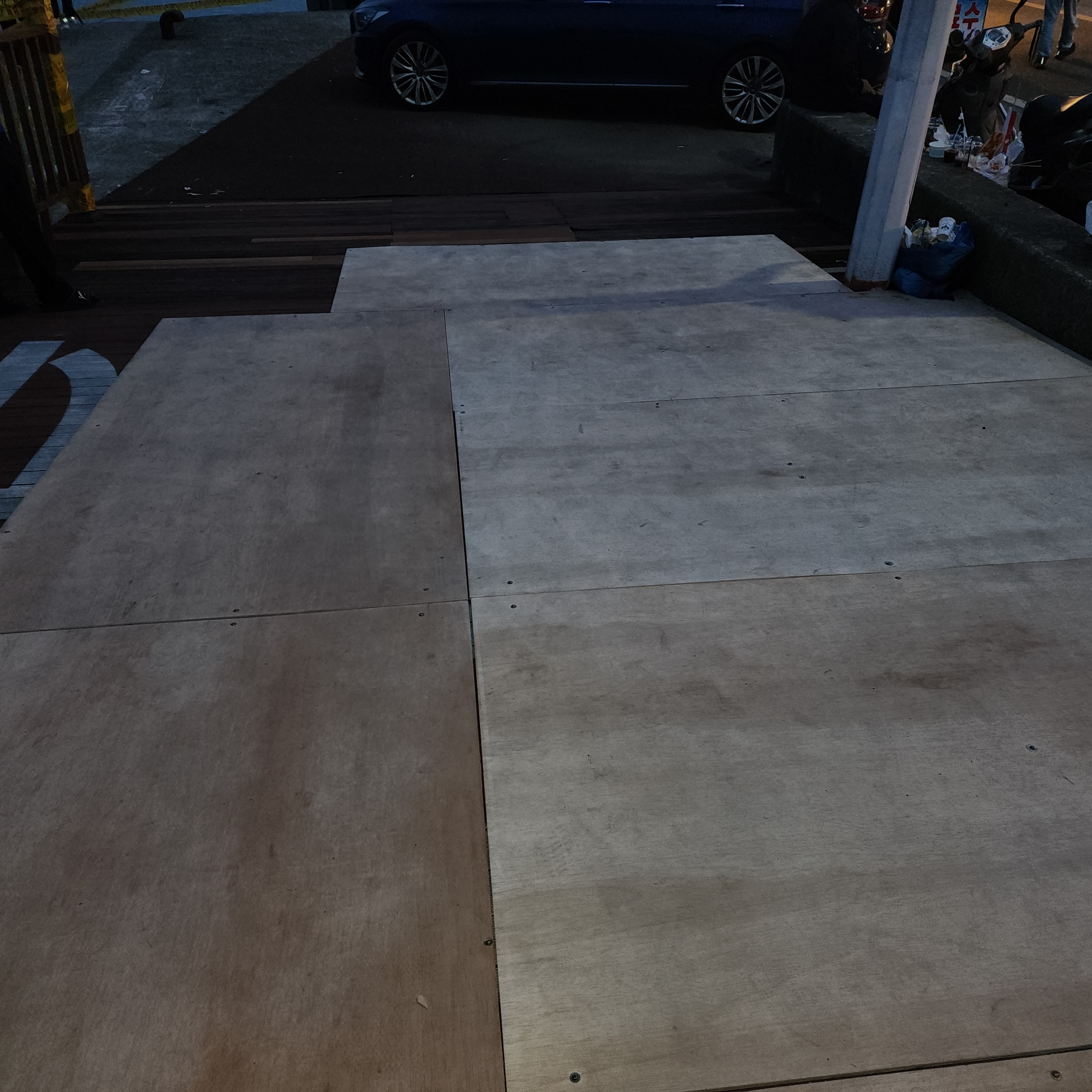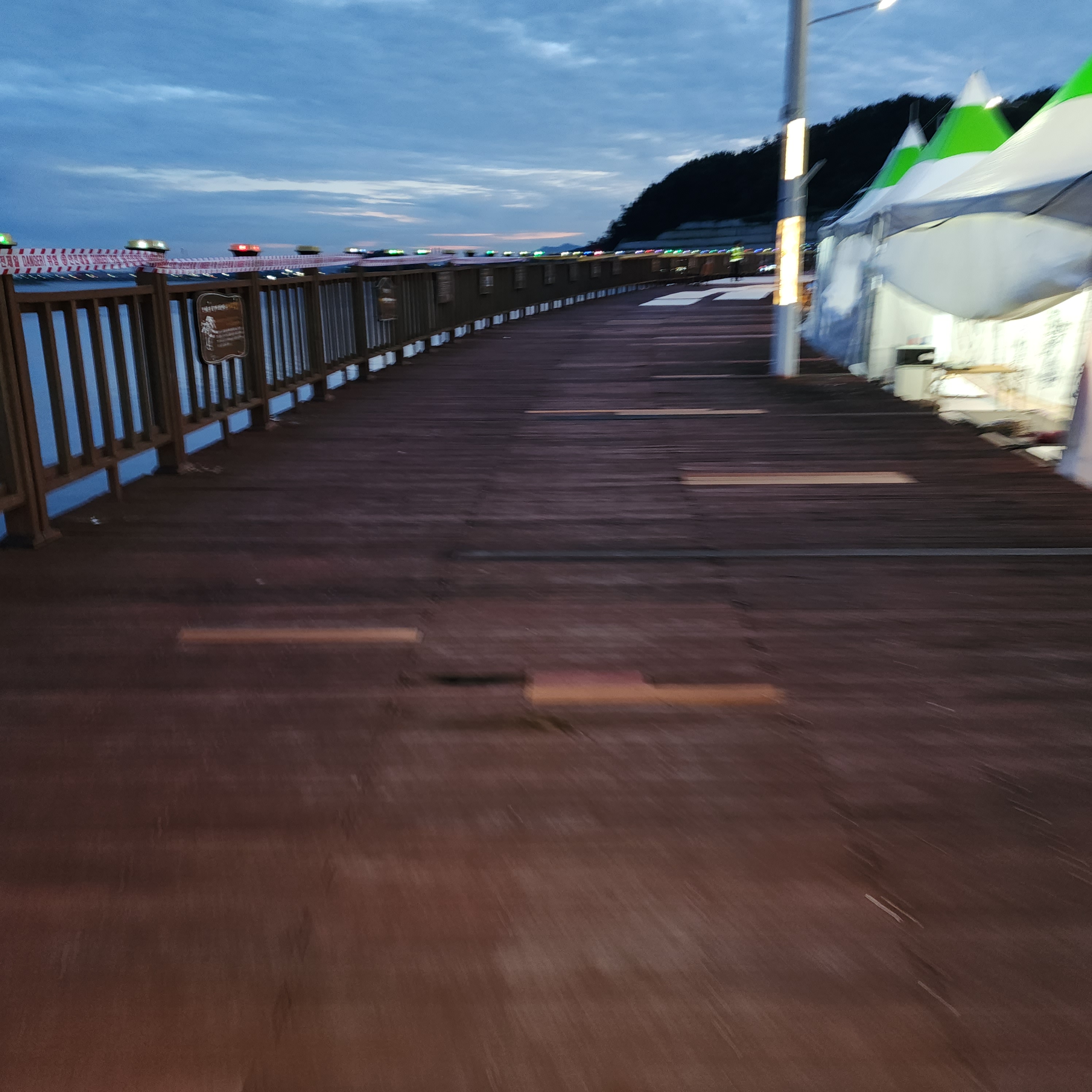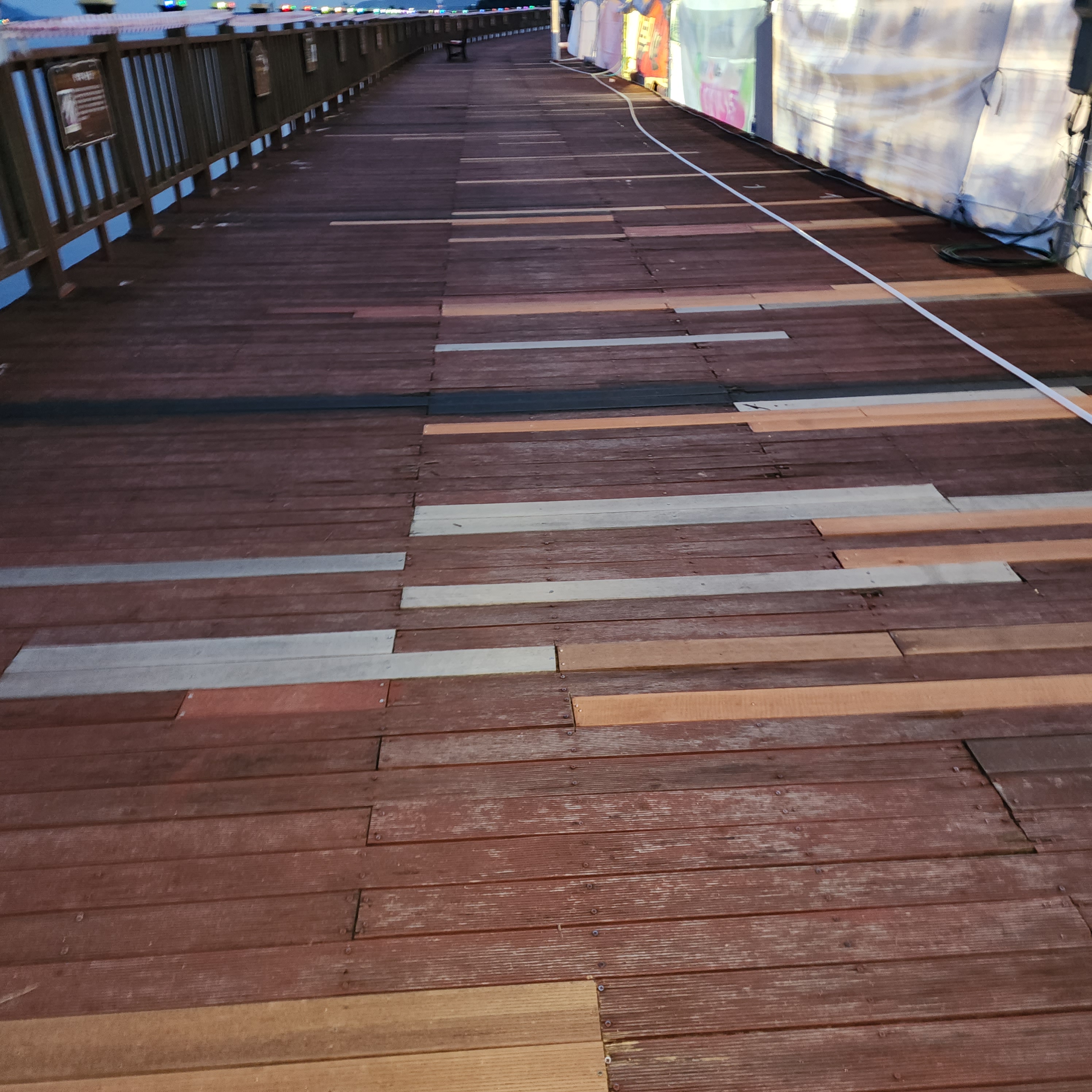 축제장 본 무대 앞의 데크는 축제를 위해 임시로 합판을 몇곳에 덧대어 놓았다.하지만 축제장 본무대앞 20여미터를지나 돌아보면 데크가 설치된곳은 부식되고 없어져 사람의 발목이 빠질 정도이며 데크아래는 바다. 깊이가 5미터 이상은 되어보였으며 부분적으로 크게 부식되어있고 관리가 안된 부분이 많이보였다.