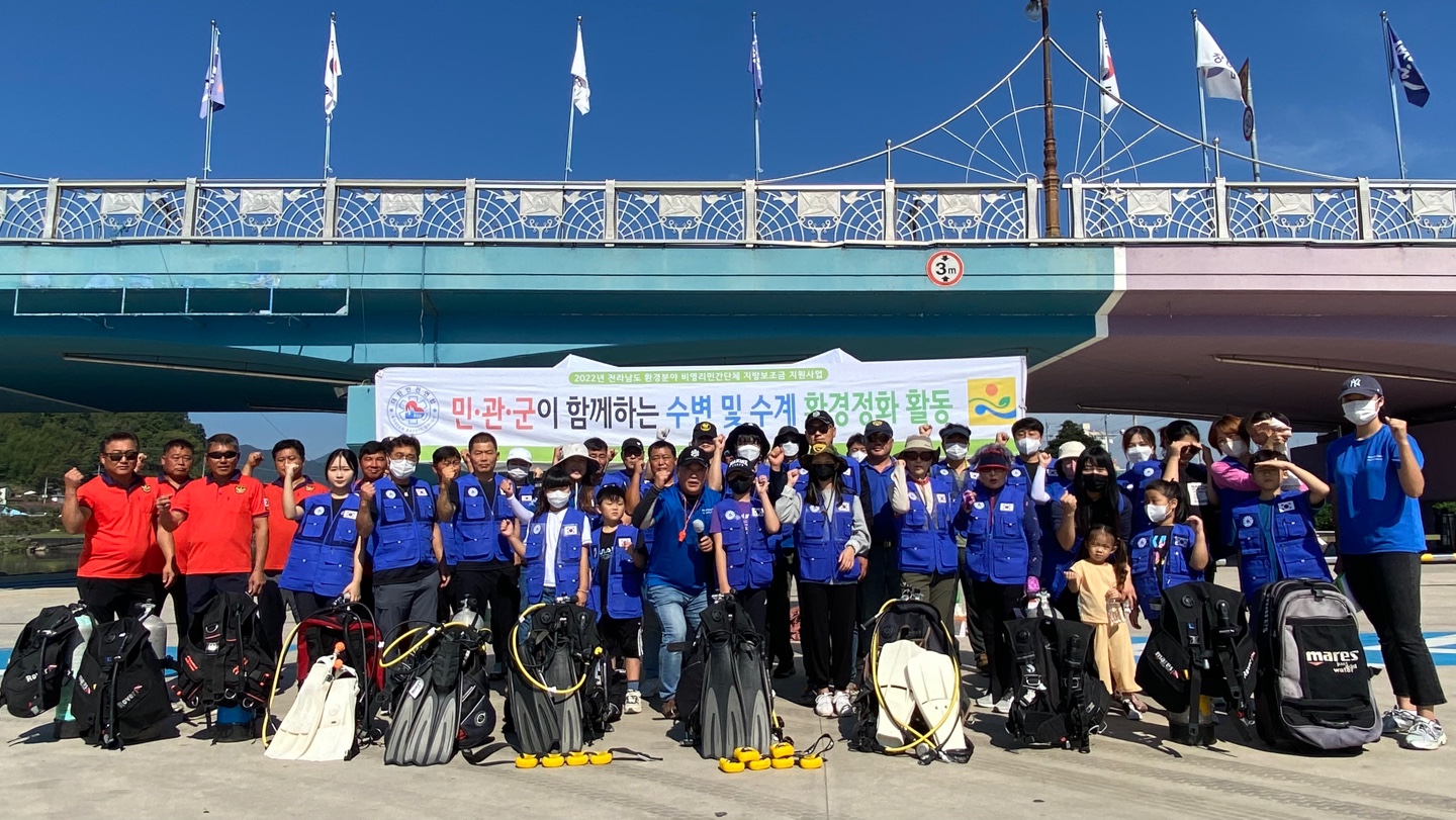 10월 1일 전남 장흥에 위치한 탐진강 일대에서 대한안전연합 그리고 각 지역 단체는 「2022년 전라남도 환경 분야 비영리민간단체 환경보호 지원사업」의 일환으로 민.관.군이 함께하는 수변 및 수계 환경정화 활동을 통해 탄소 중립을 실천 하였다.