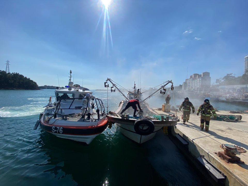 여수해양경찰서(서장 박제수)는 “여수 국동항에서 여수소방서와 화물선 등 민간선박과 합동으로 선박 화재 사고를 가정한 민관합동 화재 진압훈련을 했다”고 11일 밝혔다.