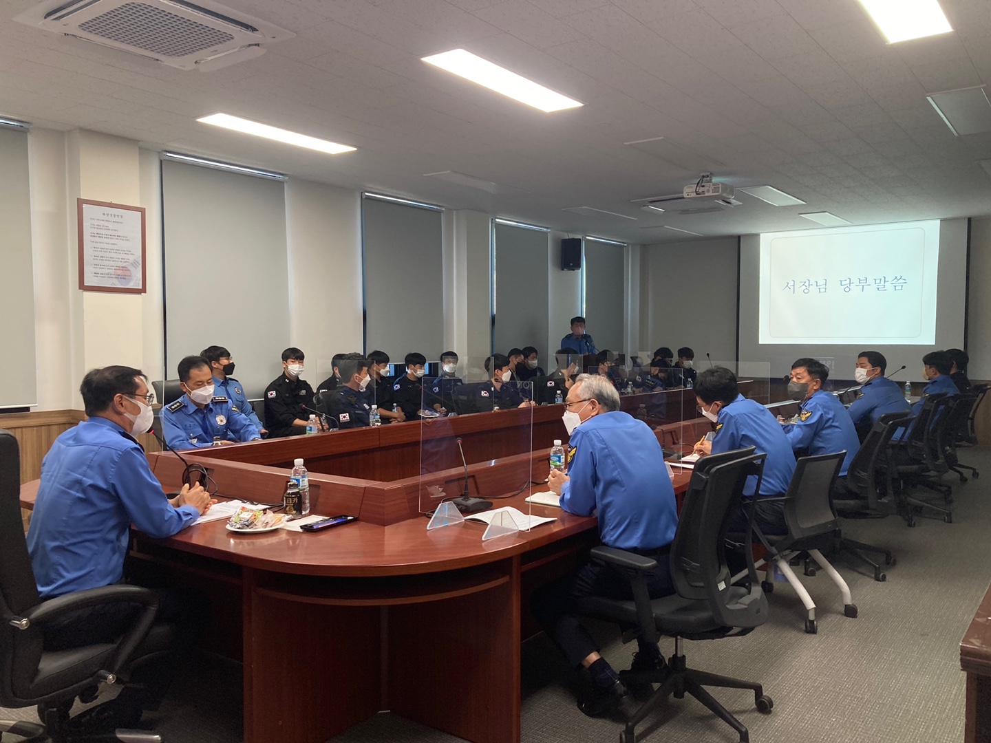 이날 워크숍에는 서귀포해경 소속 대형함정 지휘부 및 해상특수기동대원 총 30여명이 참석한 가운데, 외국어선 불업조업에 따른 치안수요 증가에 대비해 현장부서 단속역량 강화를 위한 전술토의 및 각종 사례, 단속 착안점 등 정보를 공유하는 자리를 가졌다.