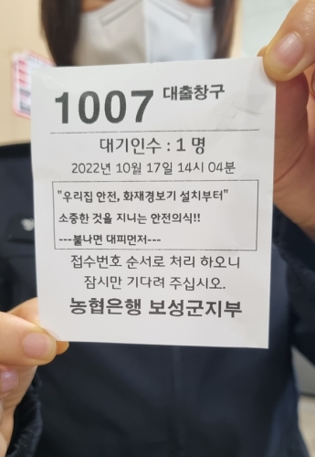 보성소방서(서장 김석운)는 주택 화재발생 시 인명피해를 줄이기 위해 은행 대기번호표를 이용한 화재경보기 설치...