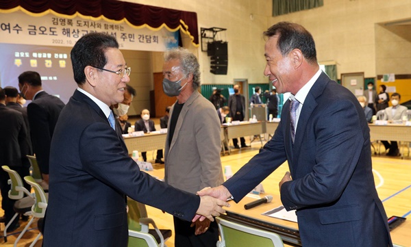 김영록 전라남도지사는 19일 취임 후 처음으로 ‘비렁길’로 유명한 여수 금오도를 찾아 주민들과 간담회를 열어 주민 삶의 질과 관광객 접근성 향상을 위한 해상교량 건설사업을 설명하고 의견을 수렴했다.