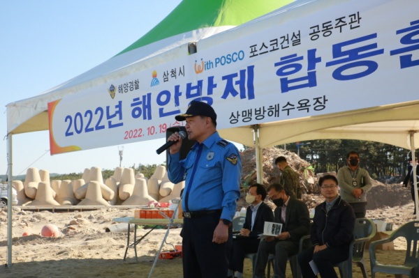 동해해양경찰서(서장 최시영)는 19일 14시부터 삼척시 상맹방 해변에서 삼척시, 포스코건설, 공단 등 15개 기관 및 단‧업체가 참가하여 2022년 합동해안방제 훈련을 실시했다고 밝혔다.