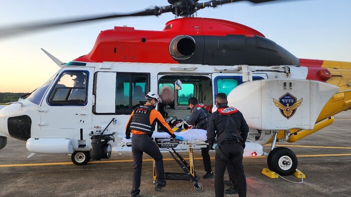 신고를 접수한 동해해경청은 환자 상태를 고려해 같은 시각 동해해역을 항공순찰 중이던 양양회전익항공대 소속 헬기를 이용 같은날 16시 40분 경 응급환자를 헬기에 편승시켰다.