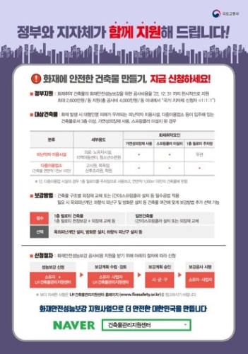 전라남도는 화재로부터 기존 건축물의 안전을 확보하기 위해 2020년부터 추진한 화재취약건물 화재안전성능보강 ...