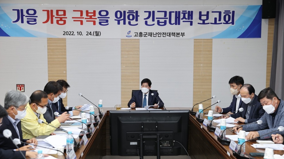 고흥군은 지날 24일 공영민 고흥군수 주재로 NH농협 고흥군지부장, 각 지역농협 조합장, 군 관계자 등 30명이 참석한 가운데 ‘가을 가뭄 극복을 위한 긴급대책 보고회’를 개최했다.