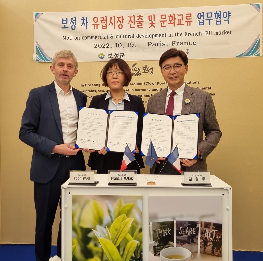 이날 MOU는 프랑스식품박람회에 참가한 보성군 차생산자조합 홍보관에서 진행됐으며, 주요 내용은 보성 농특산물의 유럽시장 내 유통 판매와 문화교류 사업 협력 등이다.