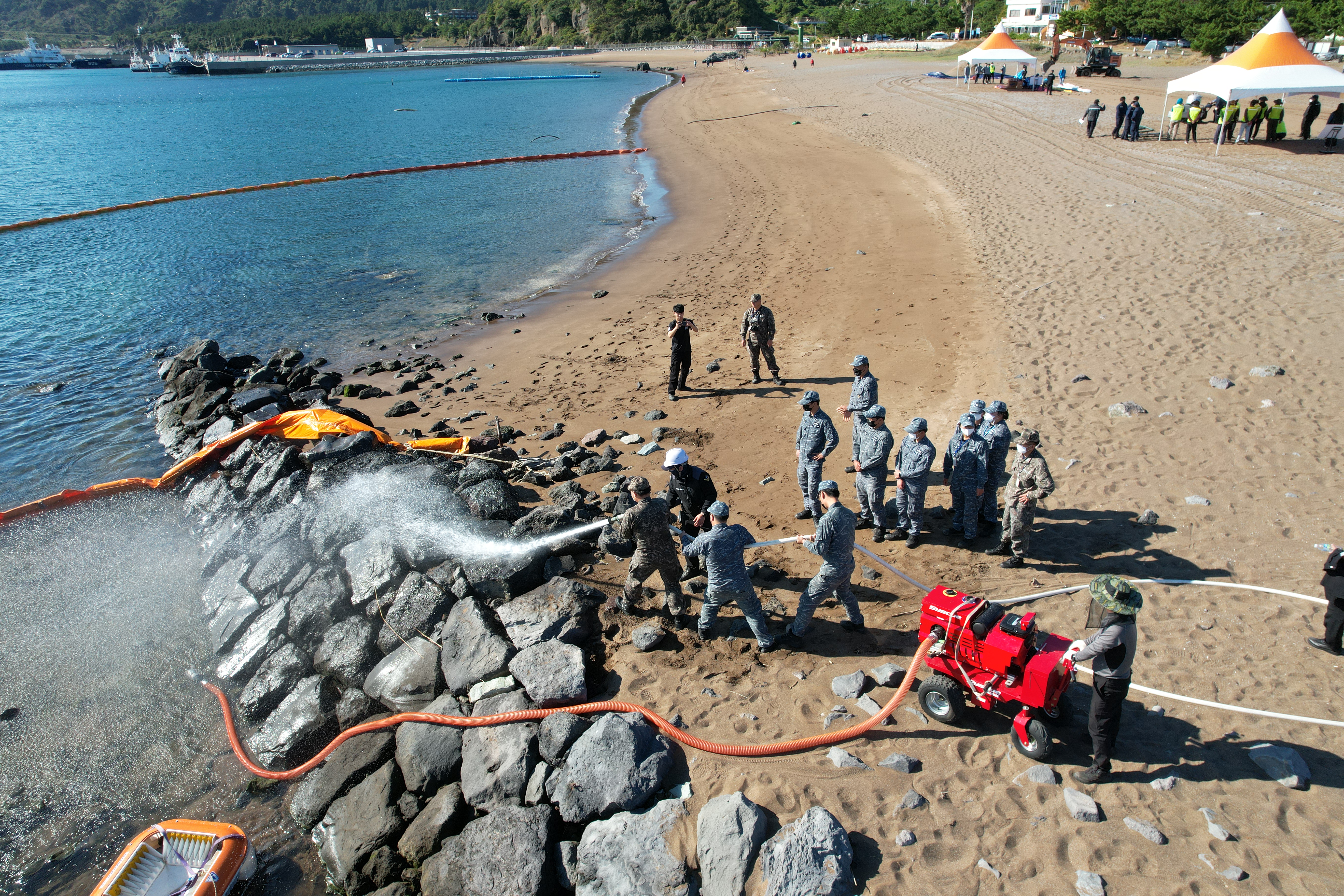 서귀포해양경찰서(서장 김진영)는 오늘(27일) 오후 2시부터 서귀포시 안덕면 화순항 일대에서 유조선 기름 유출사고를 가상한 ‘2022년 해안방제 합동훈련’을 실시했다고 밝혔다.