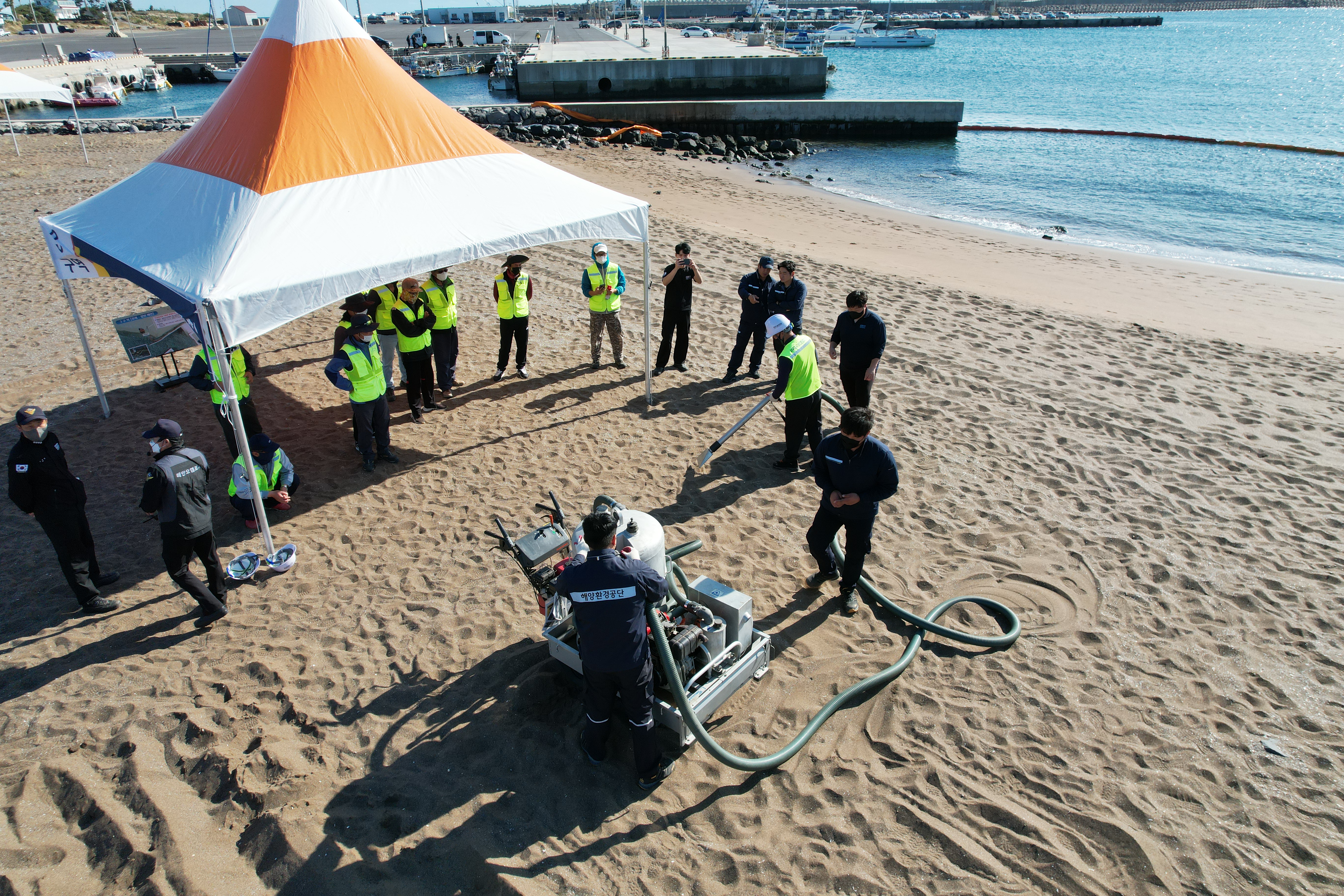 훈련에는 고압·저압세척기, 오일펜스, 유흡착재 등의 방제장비·자재가 동원돼 ▴고압·저압세척기 이용 암반 및 석축 방제, ▴중장비로 모래사장 골파기, ▴유흡착재로 오염물질 닦아내기, ▴비치크리너 이용 타르, 폐기물 수거 등 참여자들의 교육과 체험 위주로 진행됐다.
