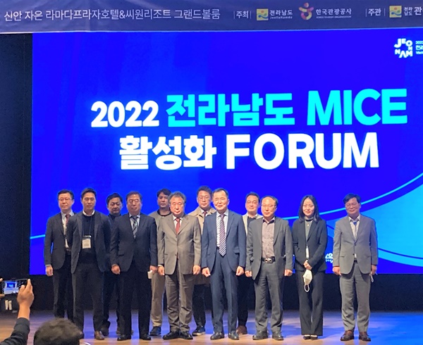 전라남도와 전남관광재단은 27일 신안 라마다프라자&씨원리조트에서 마이스 전문가, 시군, 대학 교수, 업체 등 100여 명이 참석한 가운데 ‘2022 전남도 마이스 활성화 포럼’을 열어 경쟁력 강화 방안을 논의했다.