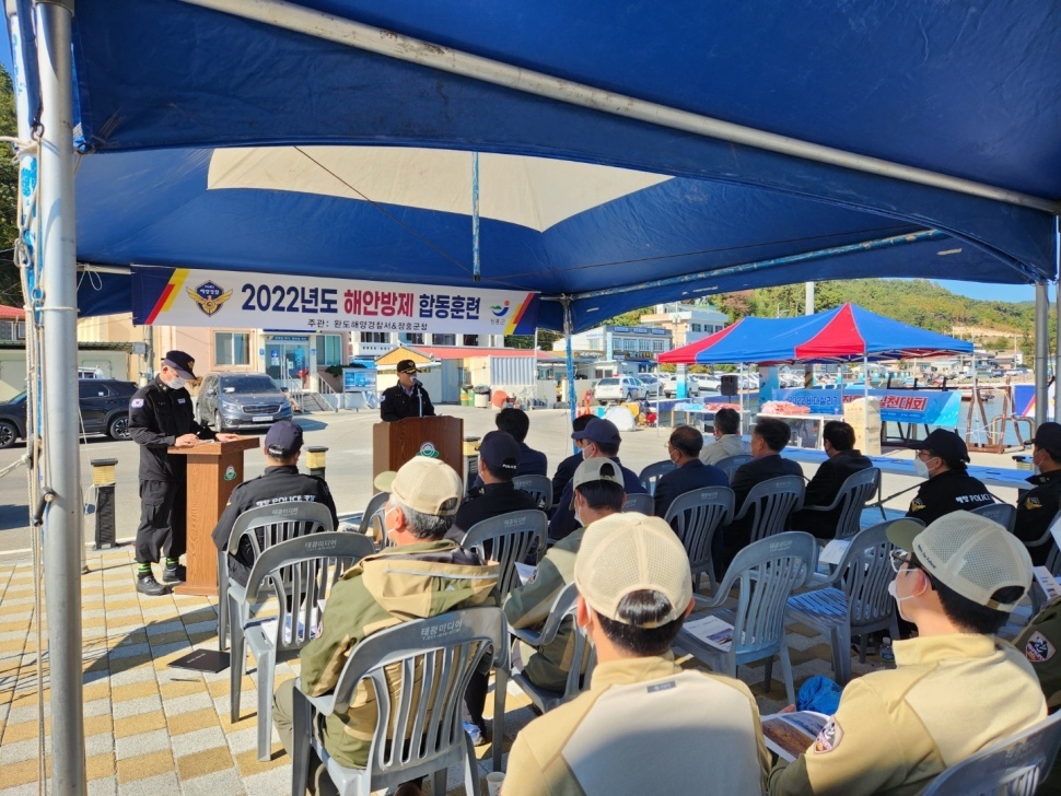 완도해양경찰서(서장 김정수)는 지난 27일 장흥군 수문해수욕장 일원에서 해안가에 기름이 달라붙은 상황을 가상하여 해안방제 합동훈련을 실시했다고 밝혔다.