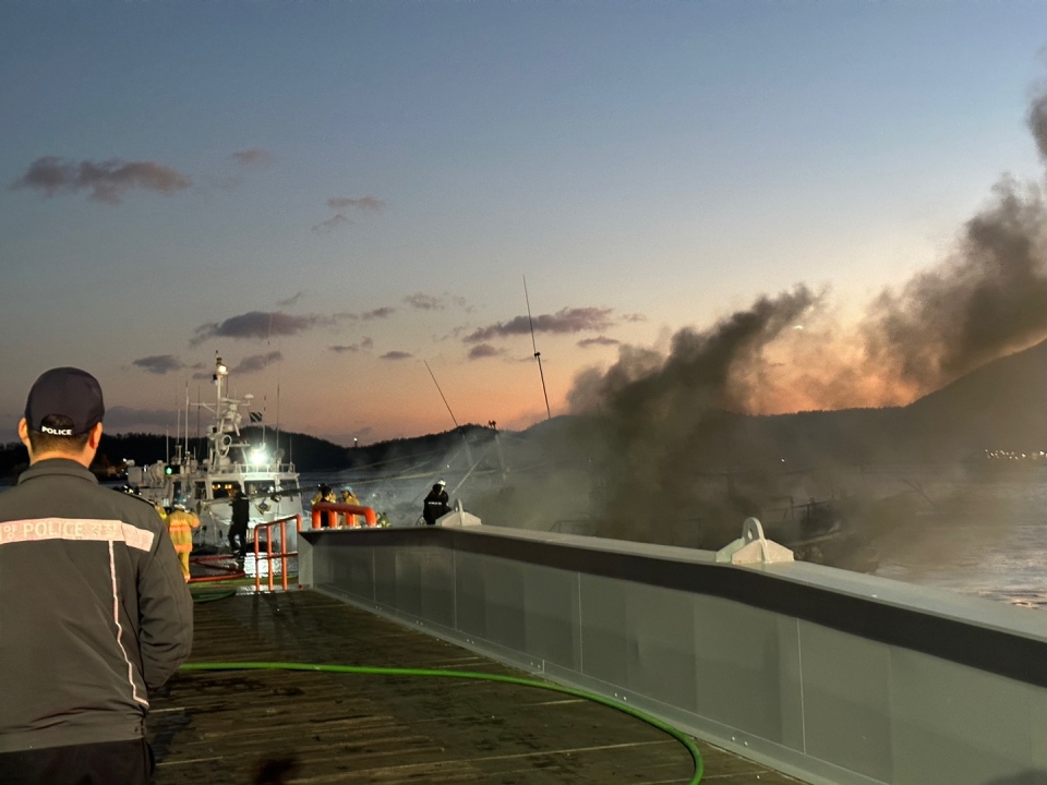 사진 설명 완도해양경찰서(서장 김정수)는 4일 새벽 4시 43분경 완도항내(완도읍 해변공원) 계류선박에서 화...