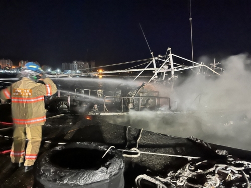 사진 설명 완도해양경찰서(서장 김정수)는 4일 새벽 4시 43분경 완도항내(완도읍 해변공원) 계류선박에서 화...