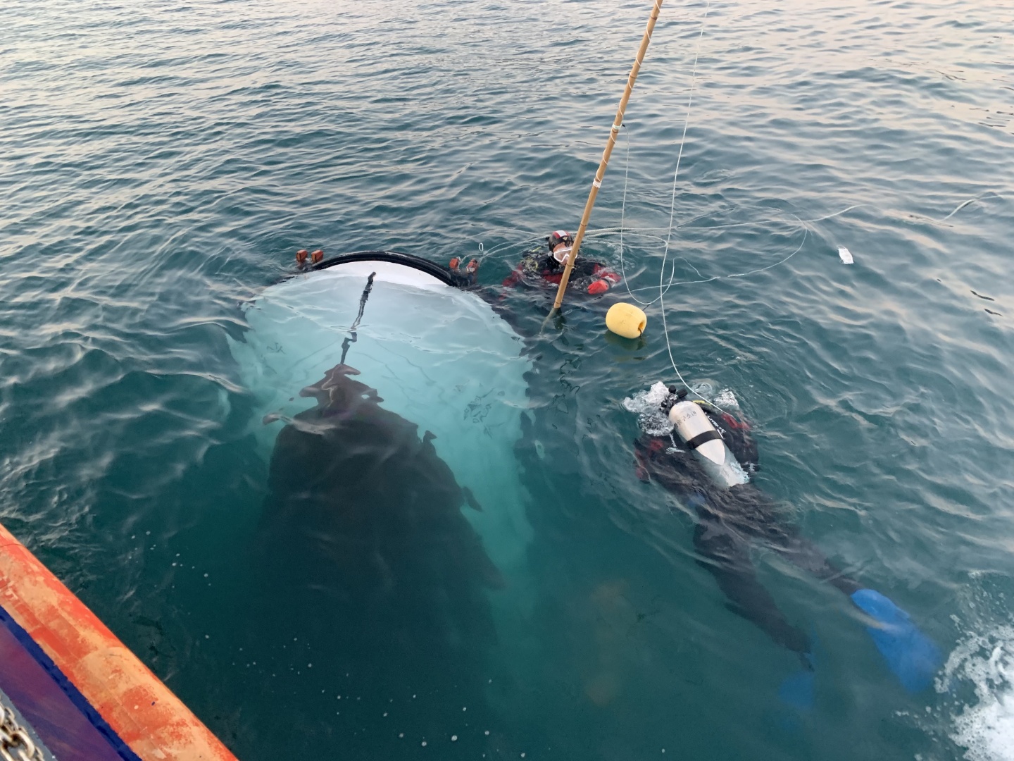 현장에 도착한 통영해경은 충돌 후 전복된 어선 B호의 선장 C씨(64년생, 남)가 보이지 않아 사고현장 인근 해상을 수색하는 한편, 구조대 잠수요원을 긴급 투입해 수중 수색을 실시한 결과, 전복된 어선의 조타실 부근에서 의식이 없는 선장을 발견하여 긴급히 구조 후 인근 병원으로 이송했으나 최종 사망판정을 받았다.
