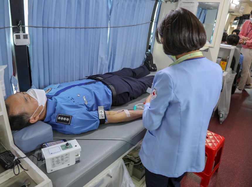 포스트코로나 시대 헌혈 감소로 혈액부족에 따른 일선 의료현장의 어려움을 해소하기 위해 여수해경 직원과 의경들이 적극 나섰다.