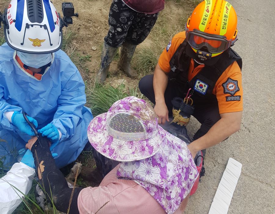 소방서에 따르면 9일 11시 53분경 풍양면 율치리의 한 논에서 콤바인에 손이 들어갔다는 신고를 받고 신속히 출동하여 A씨(여, 50세)를 구조하였다.