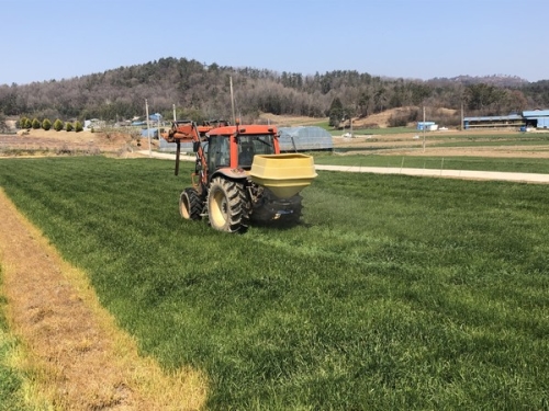 사진 설명 전라남도가 올해 벼, 고구마 등 농작물 수확이 마무리됨에 따라 지력증진을 위해 토양개량제를 살포하...