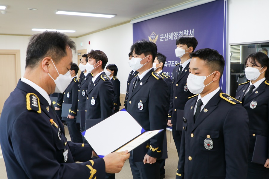 이들은 지난 2월 여수에 위치한 해양경찰교육원에 해양경찰 제245기로 입교해 신임기본교육 및 관서실습 등 총 39주의 교육과정을 이수한 뒤 군산해경에 배치됐다.
