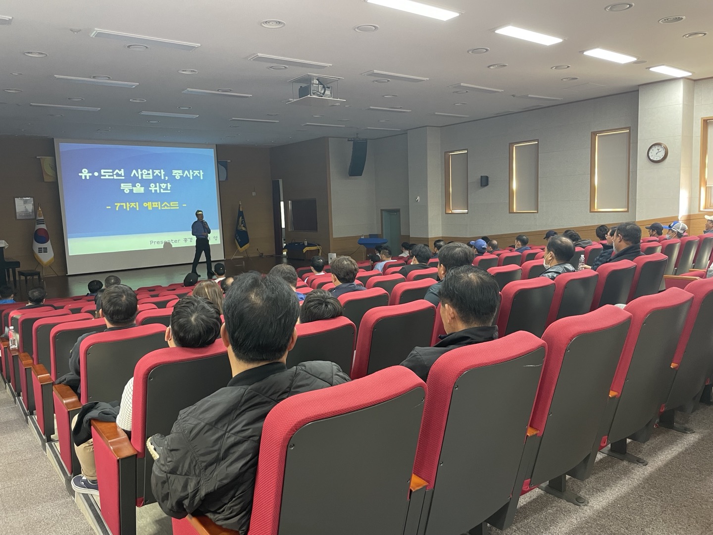 서귀포해양경찰서(서장 김진영)는 어제(23일) 오후 청사 내 대강당에서 유·도선 사업자 및 종사자를 대상으로 안전운항 관련 교육을 실시했다고 밝혔다.