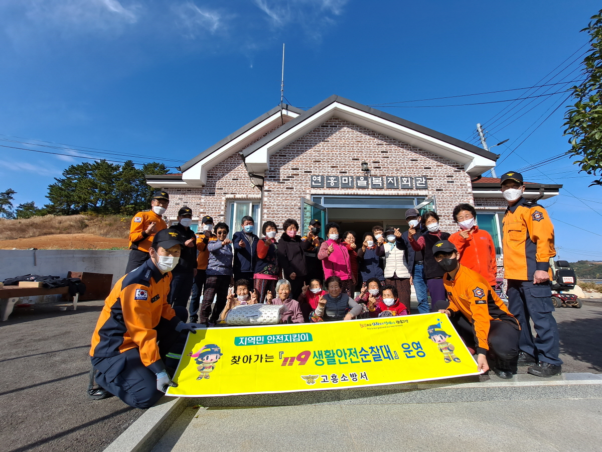 그리고 연홍도 마을회관을 방문하여 어르신들 25명에게 △소화기 사용법 및 화재 시 대피요령 안내 △주택 내 생활 속 안전사고 방지 교육 △마을회관 소화기, 구급함 전달 및 가스차단기 설치 △어르신 기초 건강체크 및 미끄럼방지 매트 전달 등 다양한 활동을 펼쳐 어르신들에게 큰 호응을 얻었다.