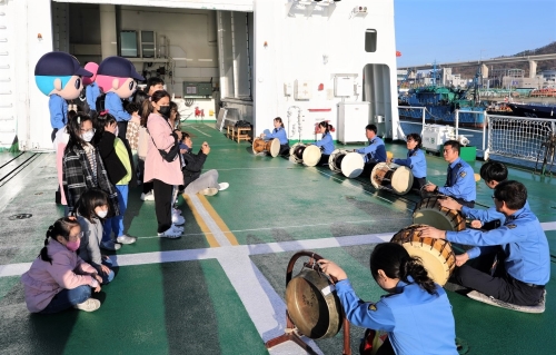 “덩덩쿵덕쿵, 덩덩쿵덕쿵!” 목포해양경찰서 경비함정 3009함 헬기데크에서 휘모리 장단 소리가 신명나게 울려...