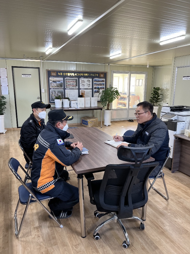 이번 안전점검은 화재발생 시 대형화재의 위험이 높은 공사장을 대상으로 실시하였으며, 주요내용은 △ 부주의로 인한 화재 주의 당부 △ 겨울철 화재위험요인 사전제거를 위한 현장지도 △ 화재안전관리 철저 당부 △ 용접 작업 시 불티 및 안전관리 주의 등이다.