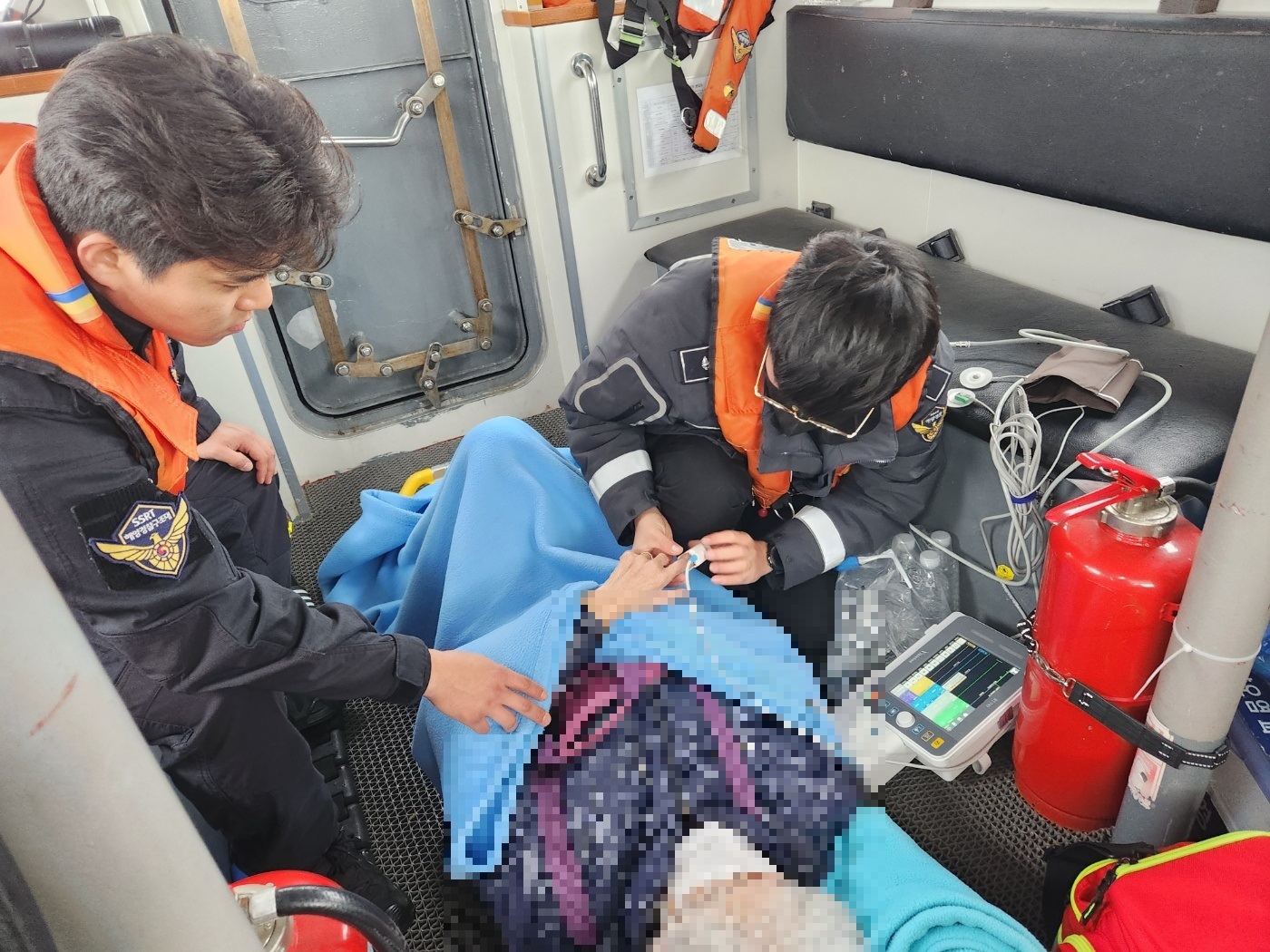 전남 진도군 섬마을에서 다리 부상을 당한 80대 주민이 해경에 의해 육지로 이송됐다.