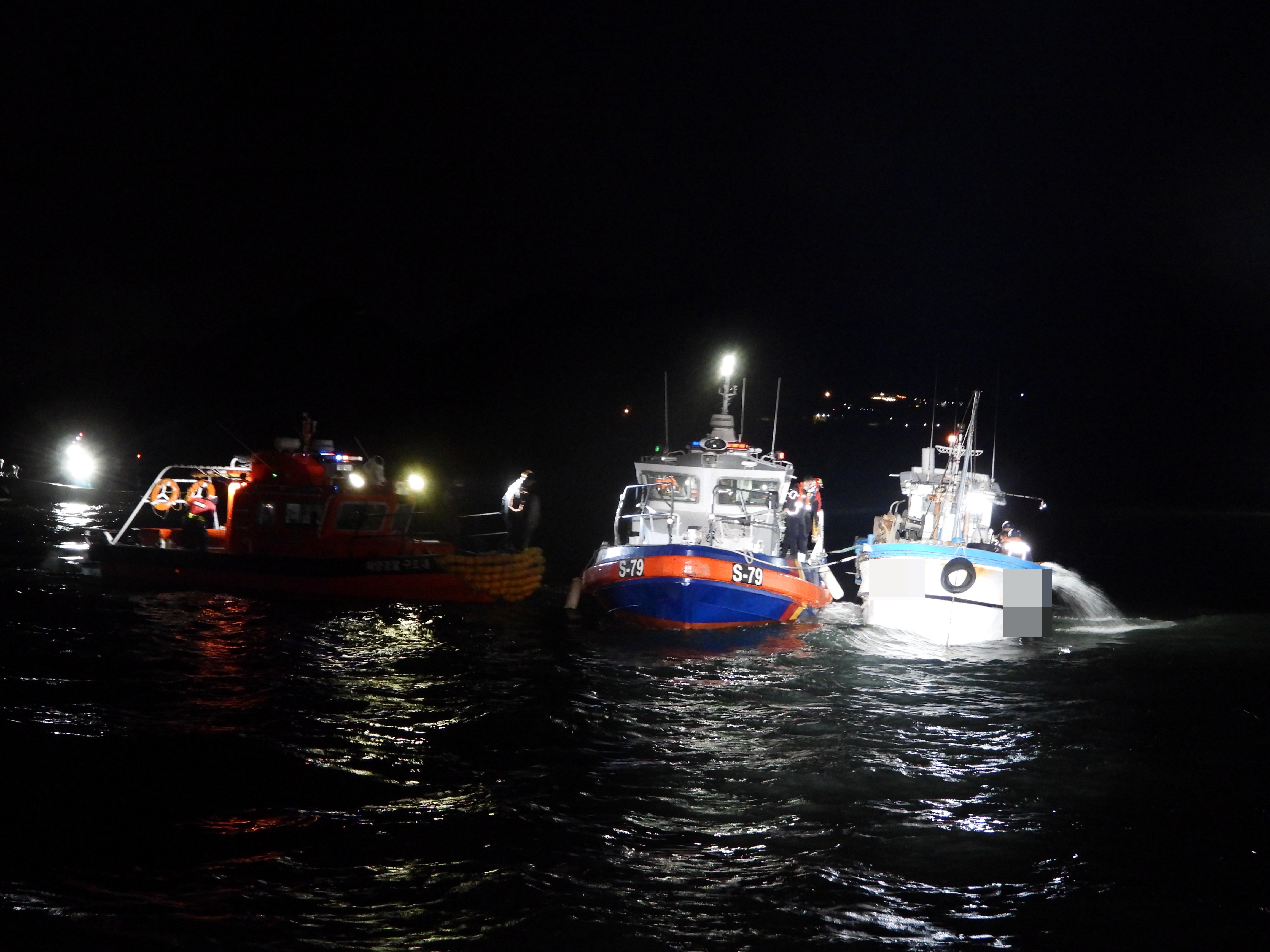현장에 도착한 창원해경은 충돌로 인해 침수가 진행되고 있는 어선 ㄷ호의 승선원을 즉시 경비함정으로 구조하는 한편, 배수펌프를 이용 배수 작업을 실시 하였다.