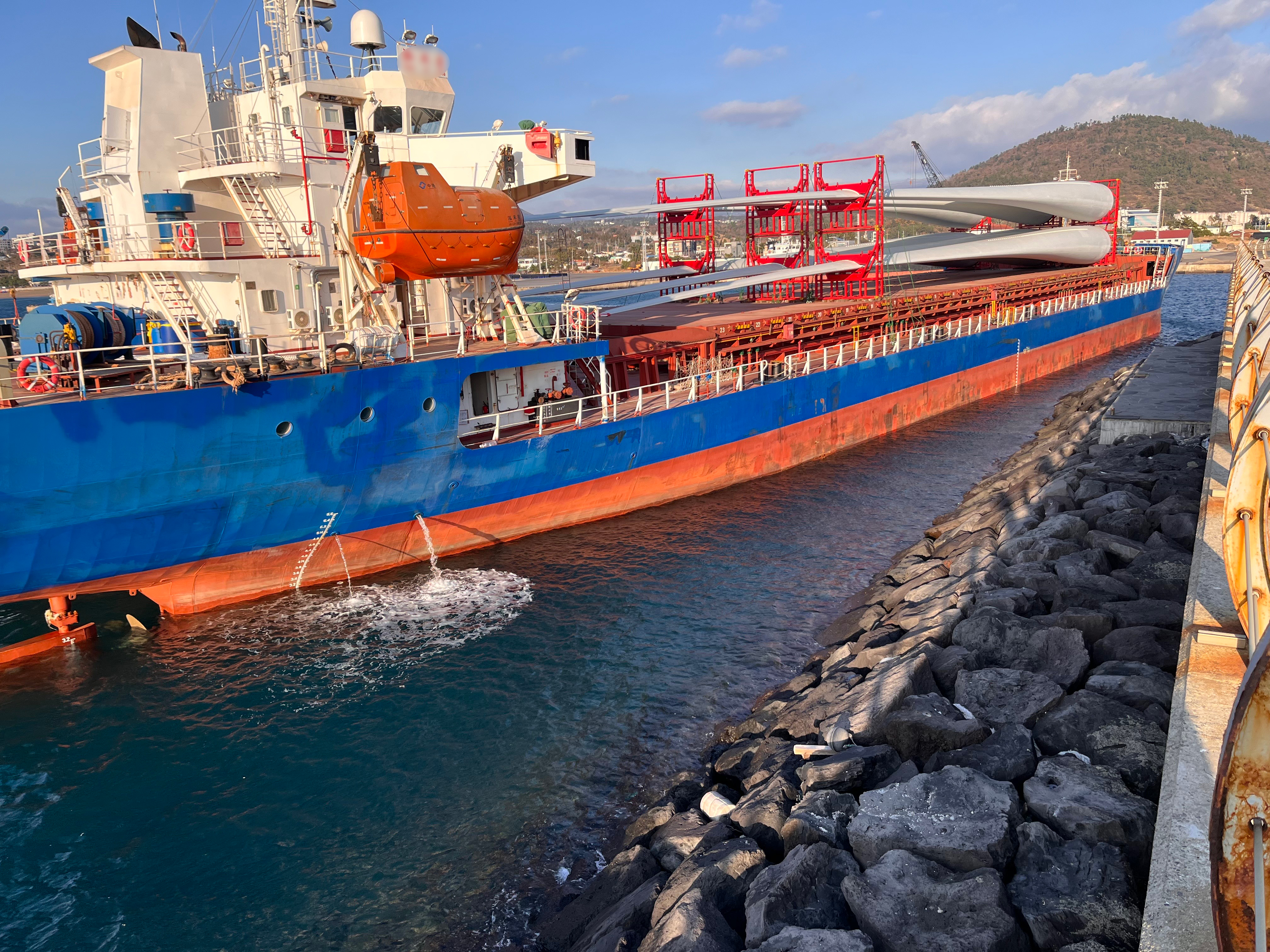 A호는 방파제 앞 3~4미터 지점까지 밀린 상태에서 선수쪽에 연결된 예인줄은 맞은편 부두에 고정하고, 선미쪽 예인줄은 경비함정을 이용해 예인을 시도한 끝에 오후 6시 25분쯤 화순항 2부두에 계류를 완료했다.